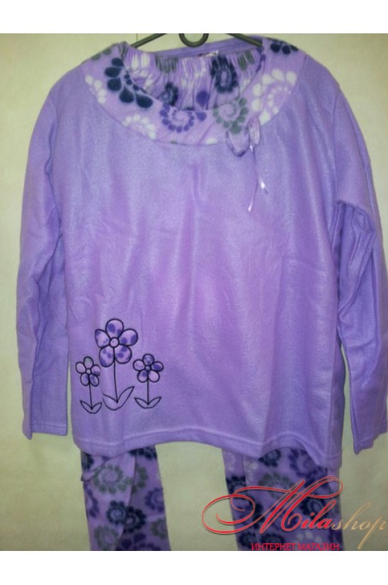 Теплая пижама состоит из кофты с длинным рукавом и штанов. Выполнена из нежнейшего флиса. Очень комфортная.