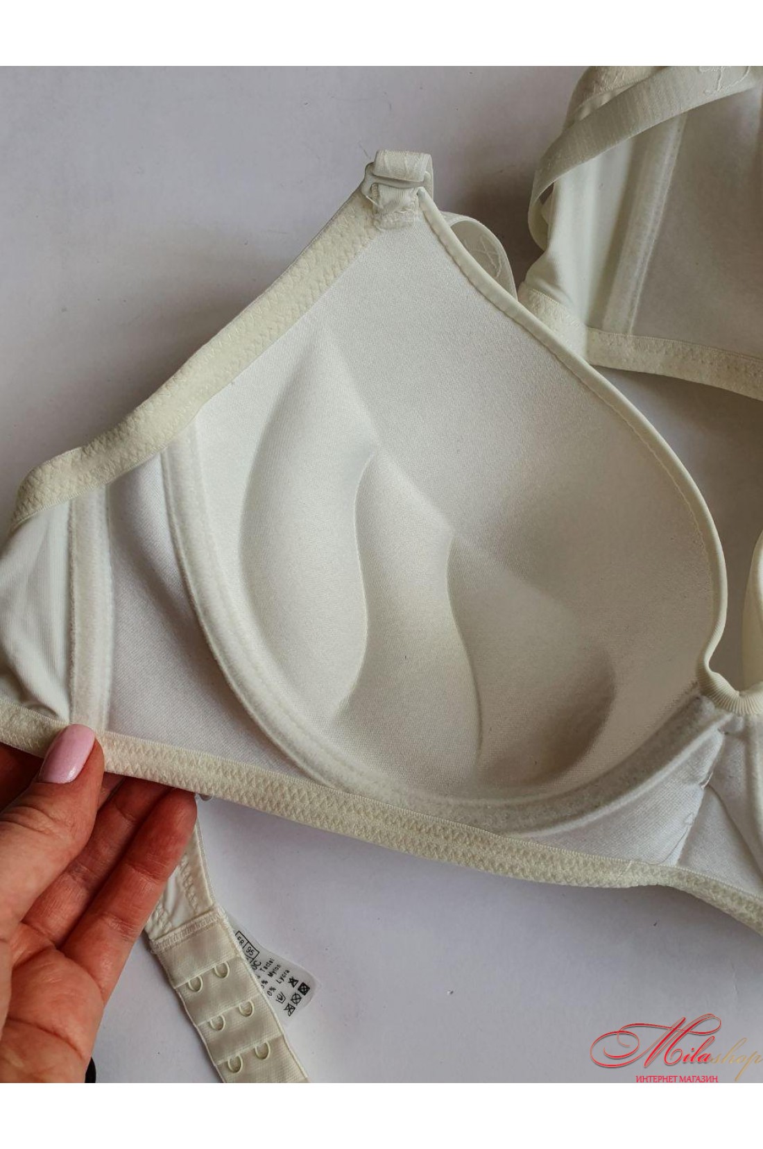 Гладкий бюстгальтер, придающий бюсту форму и хорошо его поддерживают. Бретели съемные, легко регулируются. По середине украшен украшением. Поролоновый бюстгальтер с корректором - пушапом, без кружева.