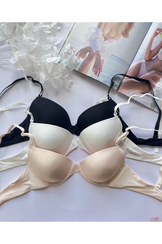 Тоненький бюстгальтер з поролону, гладка чашка, знімна бретель. Вузька перемичка, повна чашка без пуш-ап. Відмінний варіант на теплу пору року.