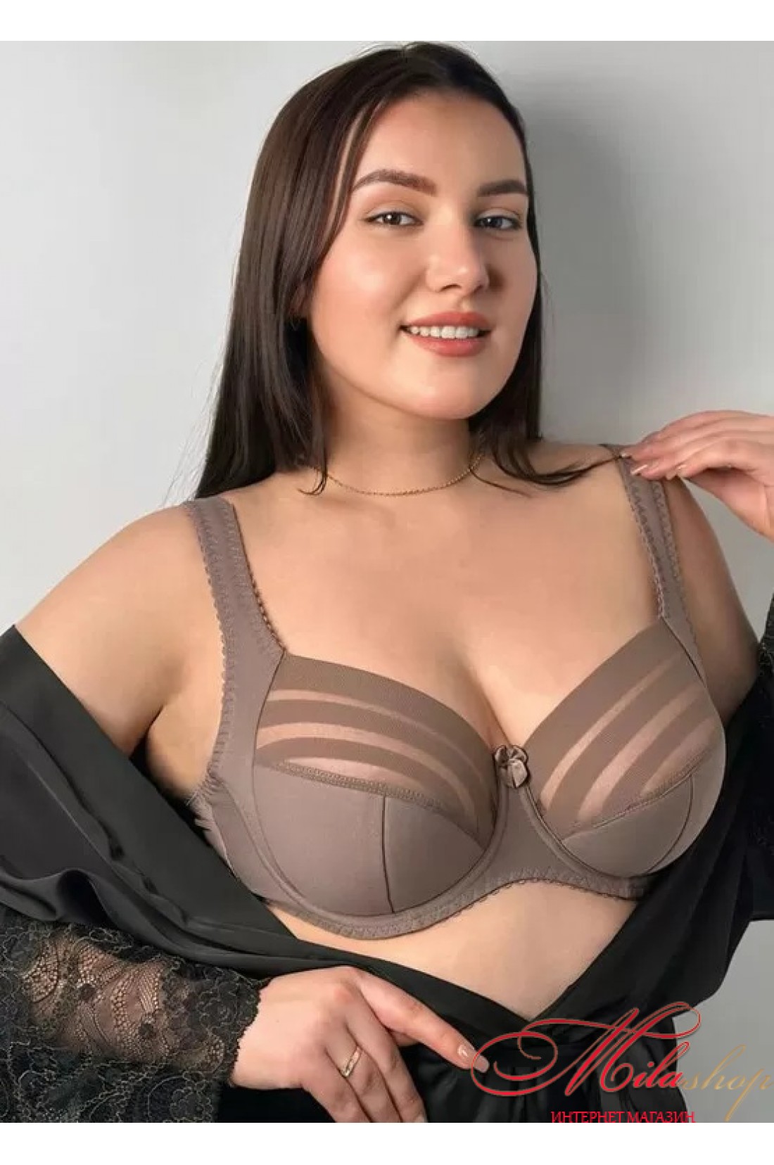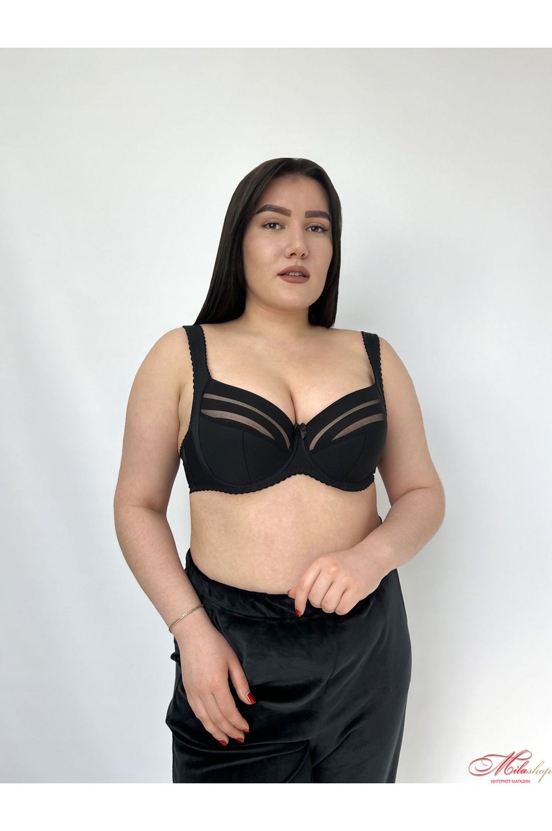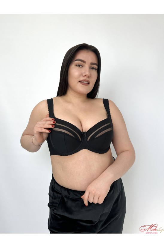 Стильний напівущільнений бюстгальтер від латвійського бренду Nana. Модель виконана із гладкої і еластичної мікрофібри високої якості. Напівпоролонові чашки на каркасах, складного крою, з діагональним і вертикальним швом. Конструкція чашок з бічною вставкою дозволяє підняти і зібрати до центру великі груди, створюючи ідеальну форму бюста. Нижня частина чашок посилена сучасним наповнювачем і забезпечує додаткову підтримку грудей знизу. Верх чашечки з напівпрозорого тюлю з горизонтальними смужками додає моделі родзинки. Перемичка анатомічної форми не тисне на живіт при рухах і забезпечує комфорт. Бретелі пошиті з еластичної гумки високої якості і регулюються по довжині. Широкий пояс забезпечує надійну підтримку для пишного бюста протягом дня.
