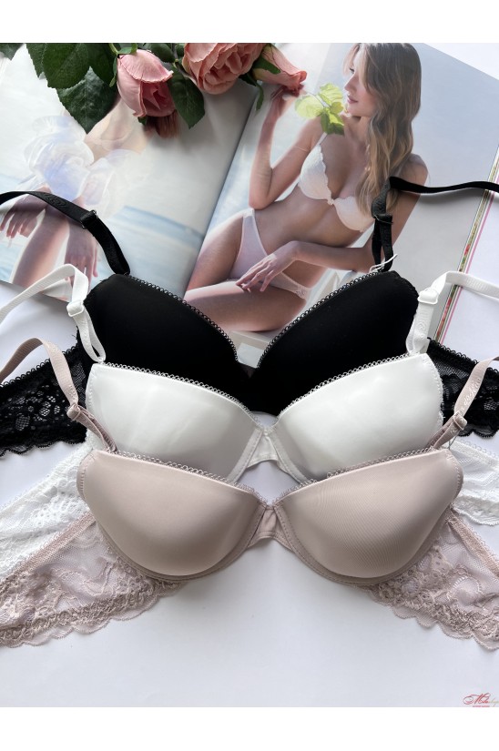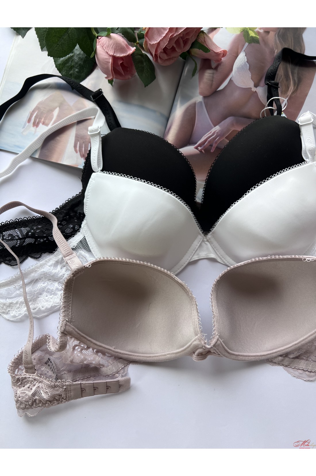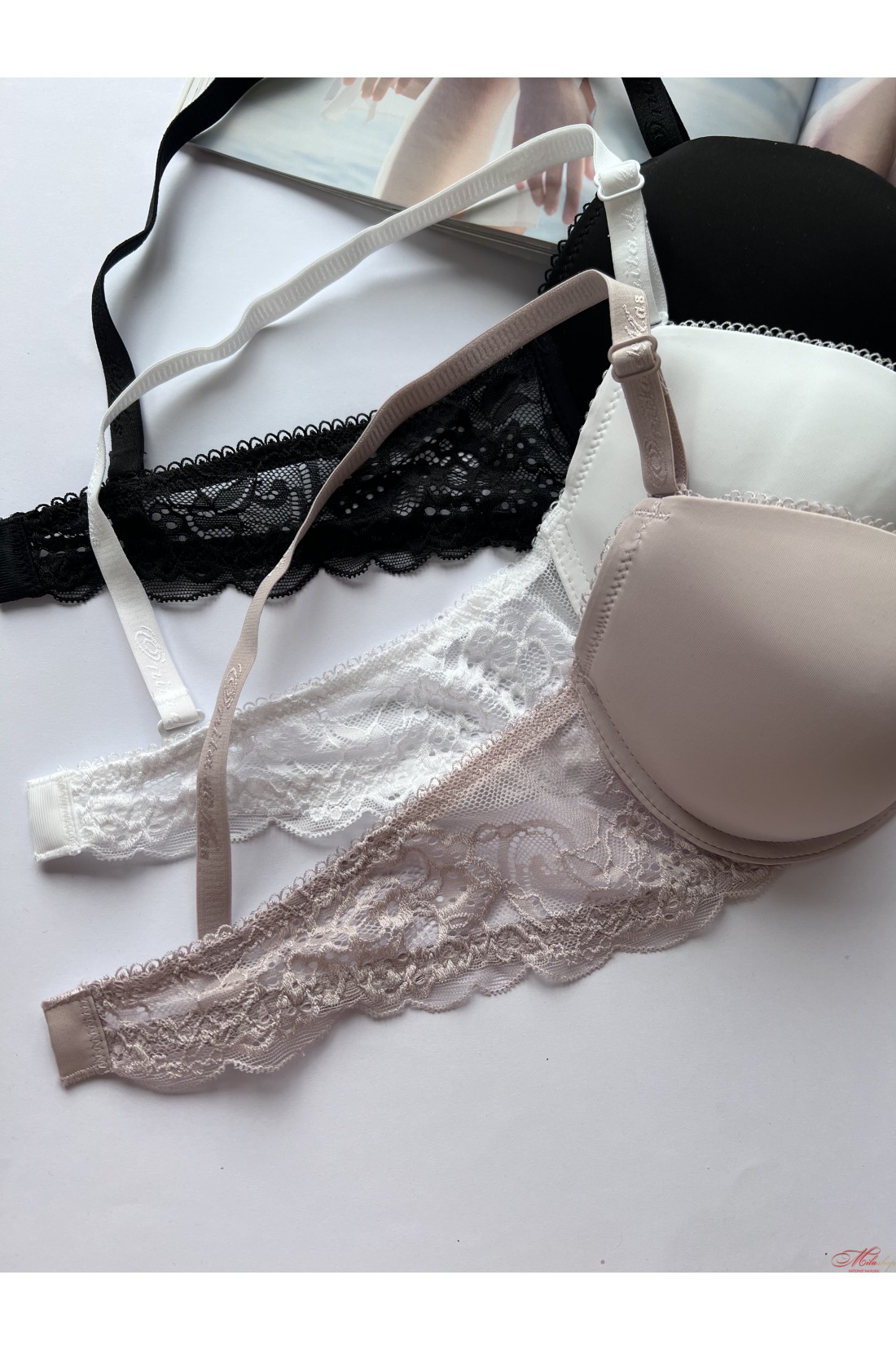 Бюстгальтер з тонкого поролону, гладка чашка без пуш-ап, спинка виконана з гарного мережива, знімна бретель, регулюється по довжині.
