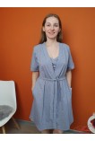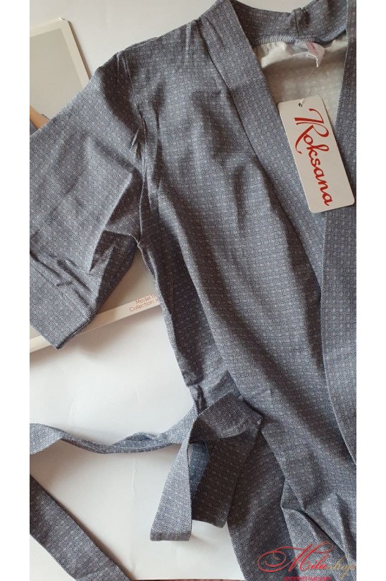 Бавовняний халат напівприлеглого силуету. Модель із запахом на поясі, з кишенями у швах. Низ рукавів із манжетами.