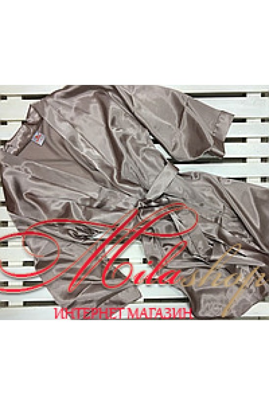 Шикарный короткий халат цвета капучино, длиной до середины бедра, на запах под поясок. Широкий рукав придает изысканности образу.