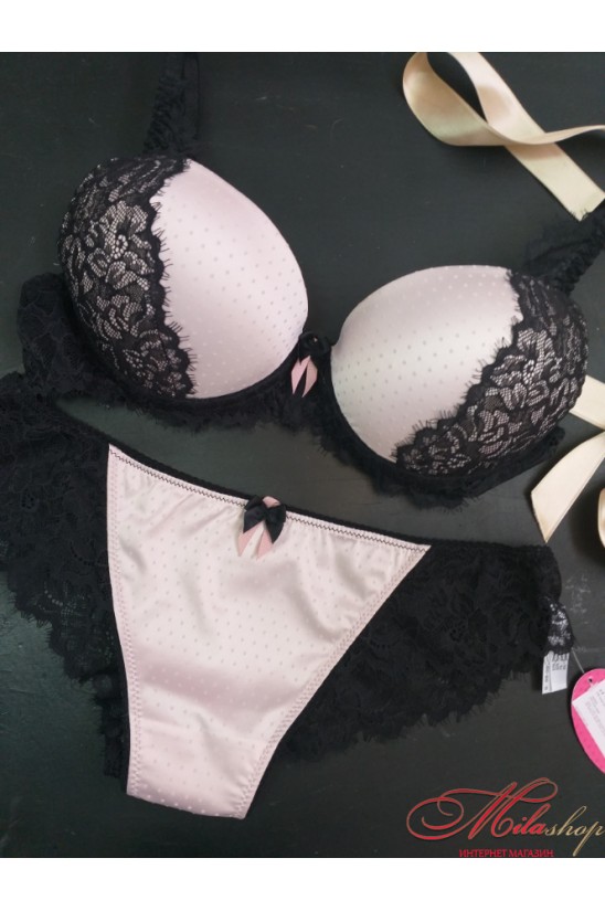 Чувственный, элегантный комплект. Состоит из бюстгальтера и трусиков бразильян. Бюст выполнен из нежной блестящей ткани и декорирован контрасным кружевом, хлопковый внутренний слой. Форма чашки бюстгальтера придает красивую и естественную линию груди, удобный и хороший фитинг, конструкция обеспечивает поддержку груди и придает красивую форму. Обладает приятными тактильными ощущениями, позволяет дышать коже и дарит свободу движений. Трусики бразильяны выполнены из мягкой ткани и кружева, декор бантик.