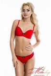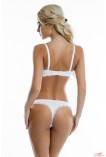 Бюстгальтер корректор на поролоне,с формованными чашками на стане. Трусики стринги и слипы. Комплект выполнен из шелковистой однотонной микрофибры. На чашках по внешней стороне отделка изящным тонкий цветным кантом. Низ стана украшен отделкой их гипюра Аксессуар - атласный бантик с маленьким золотистым якорем. Отстегивающиеся бретели.