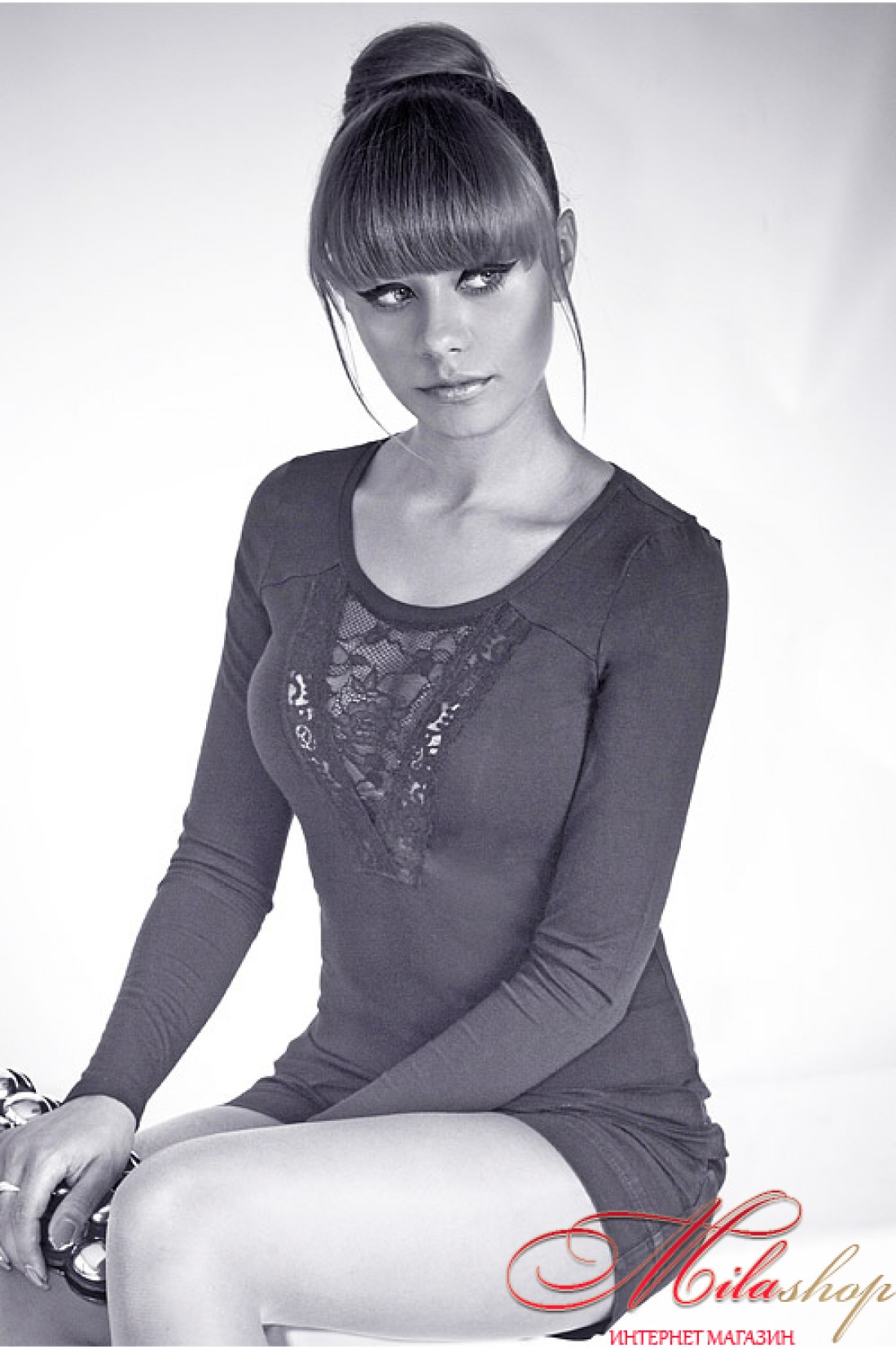 Привлекательная блузка из натурального трикотажа. Декор - вставка из красивого кружева. Соблазнительное декольте!