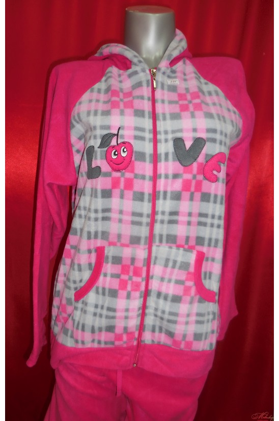 Теплая флисовый костюм, может использоваться и как пижама для прохладных ночей. Реглан на змейке с длинным рукавом и аппликацией на груди. Флисовые штаны на мягкой резинке. Состав: 100% polyester microfleece. Машинная стирка. Микрофлисовая пижама ― незаменимая вещь для дома. Мягенькая пижама очень приятная к телу, практически невесомая, но при этом теплая.
