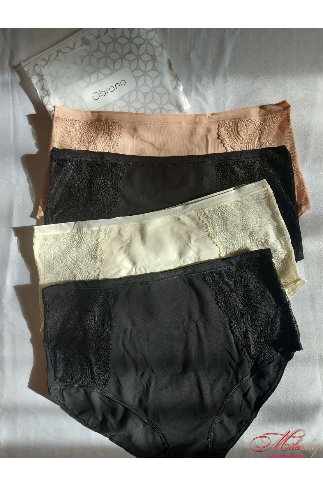 Трусики Obrana виконані з бавовняного полотна із вставками із гарного мережива. Висока лінія талії. Дуже комфортні м'які плоскі шви.
