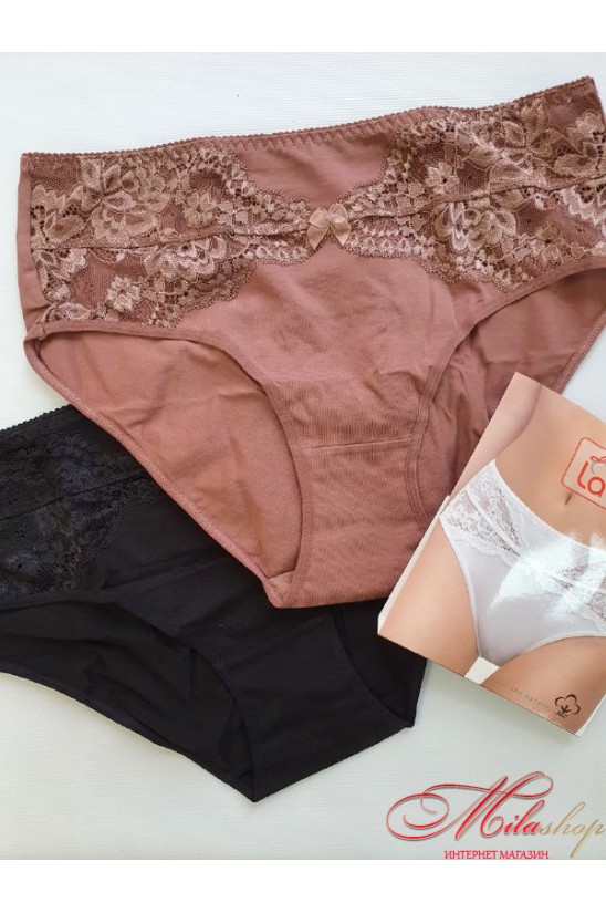 Женские трусики из хлопка. Спереди декорированы вставками из мягкого кружева. Высокая линия талии.