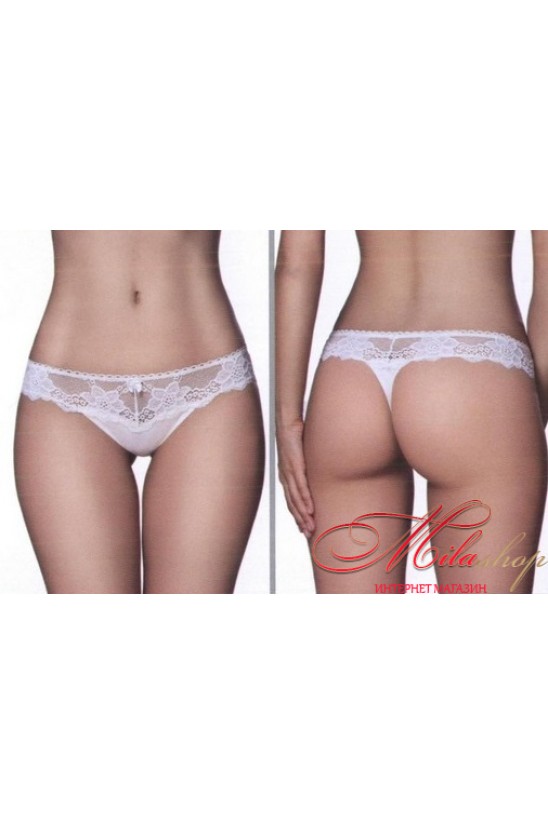 Женские трусики-стринги со средней линией талии. Выполнены из хлопка с кружевным широким поясом.
