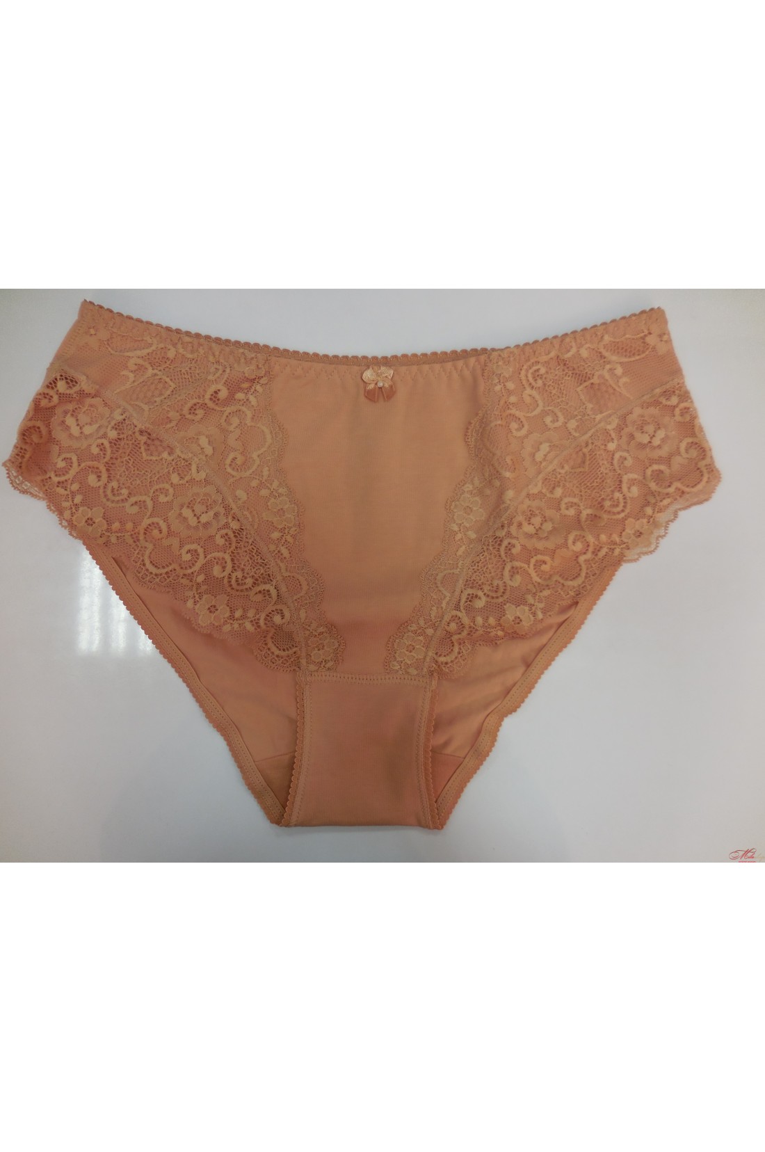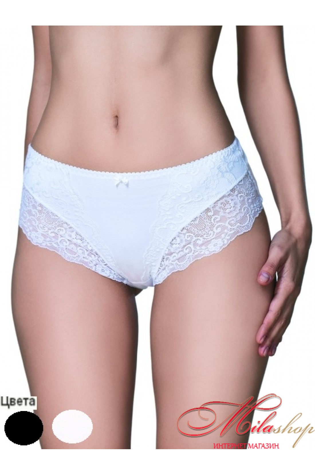 Женские трусики с высокой линией талии. Широкий бок. Выполнены из хлопкового полотна. Спереди украшены вставками из эластичного кружева.