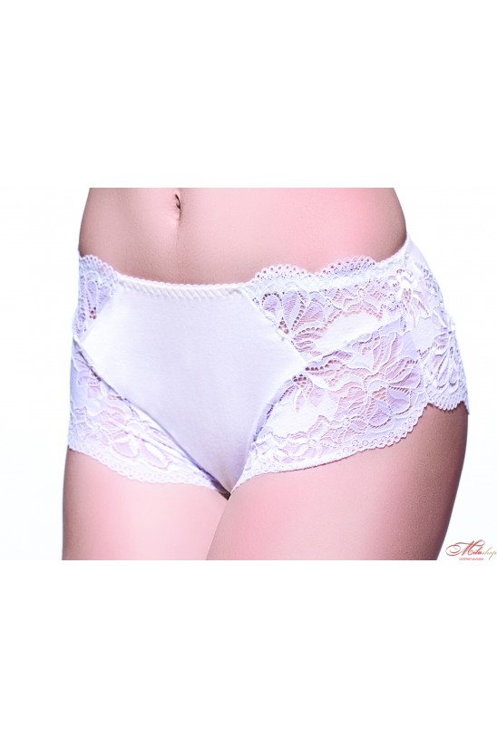 Женские трусики из хлопкового полотна и кружева. Высокая линия талии, широкий бок.