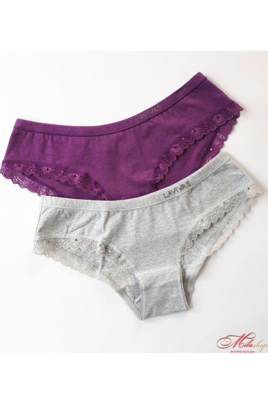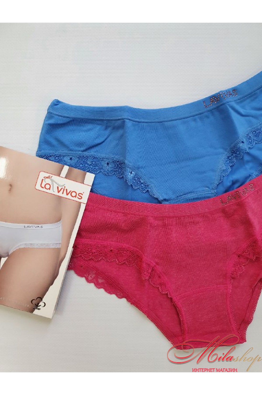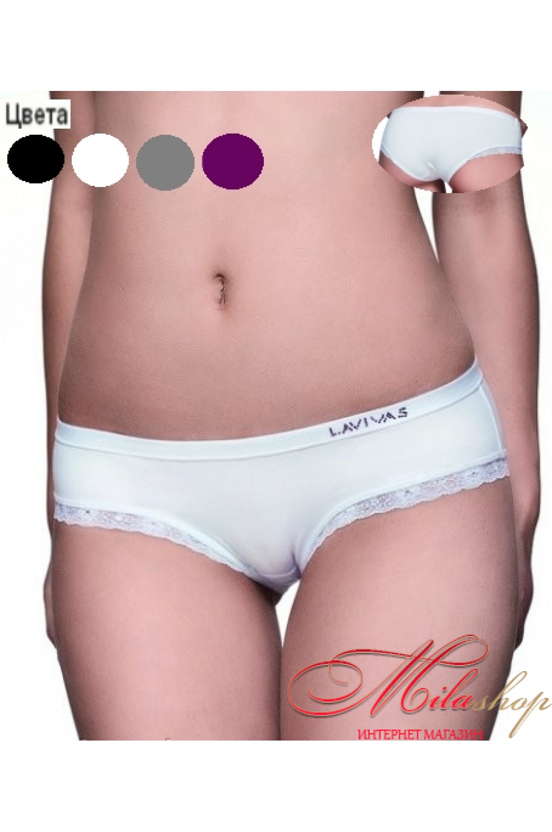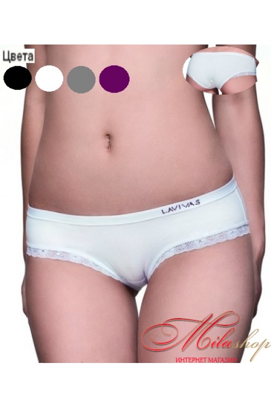 Женские трусики-шортики из хлопка. Комфортная резинка, украшена стразами в виде логотипа LaVivas. По нижнему краю украшены тонким кружевом.