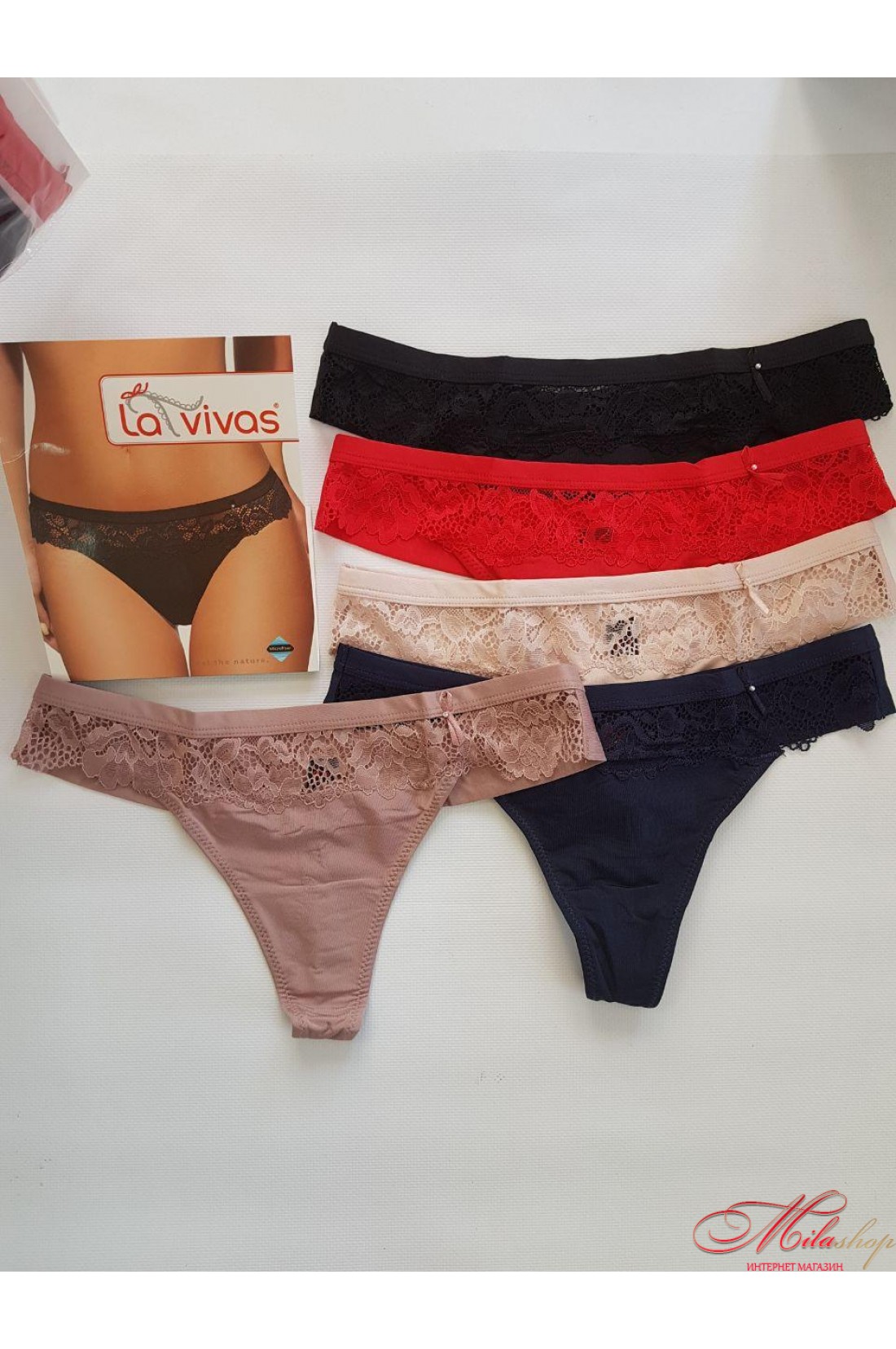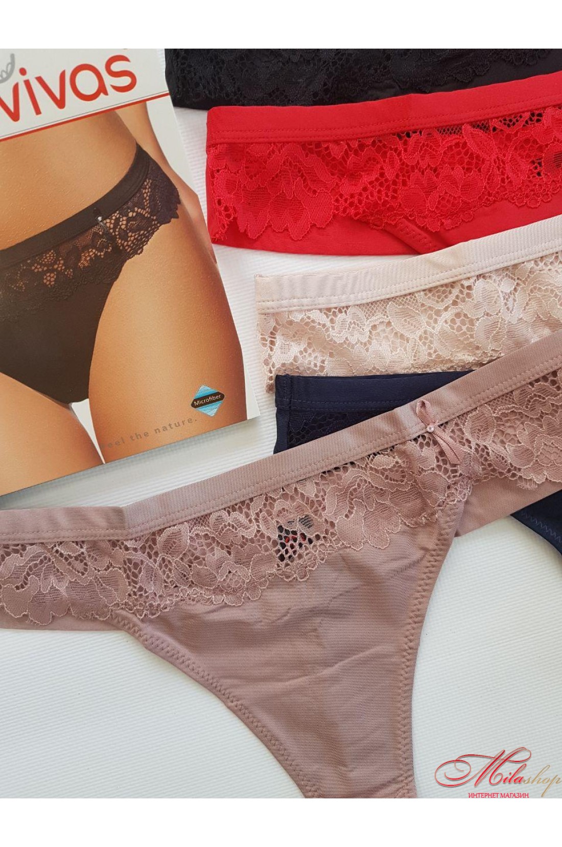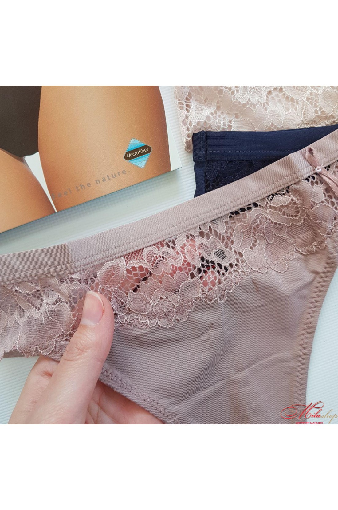 Трусики-стринги из микрофибры с кружевной вставкой.