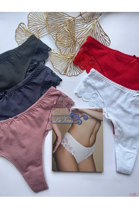 Жіночі високі трусики стрінги з бавовни La Vivas 60662