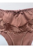 Жіночі трусики стрінги з високою лінією талії. Виконані з високоякісної бавовни. Прикрашені мереживом по нижньому краю. Задня частина декорована бантиками.