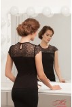 Джемпер женский прилегающего силуэта из эластичного трикотажного полотна, с короткими рукавами и кокетками из полупрозрачного кружева.