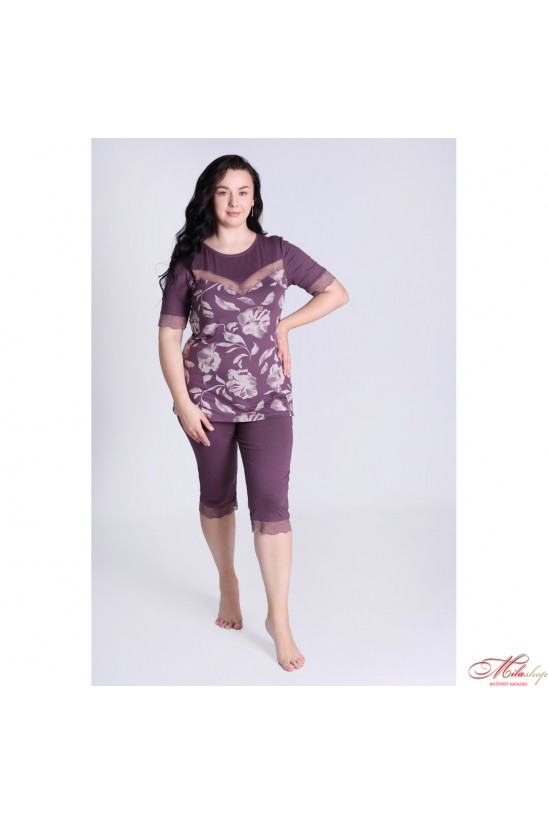 Комплект складається з облягаючих бриджів та туніки вільного крою, з коротким рукавом та квітковим принтом. Матеріал добре тягнеться та пропускає повітря.
