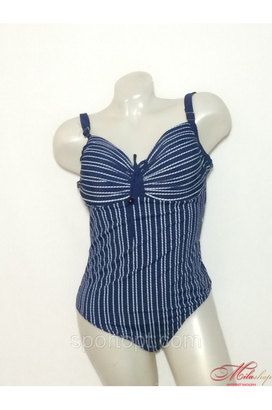 Стильный, слитный купальник. Чашки - тонкий поролон, спинка на застежке. Широкие регулируемые бретели. Верхняя часть украшена цветочным принтом. Размер европейский.