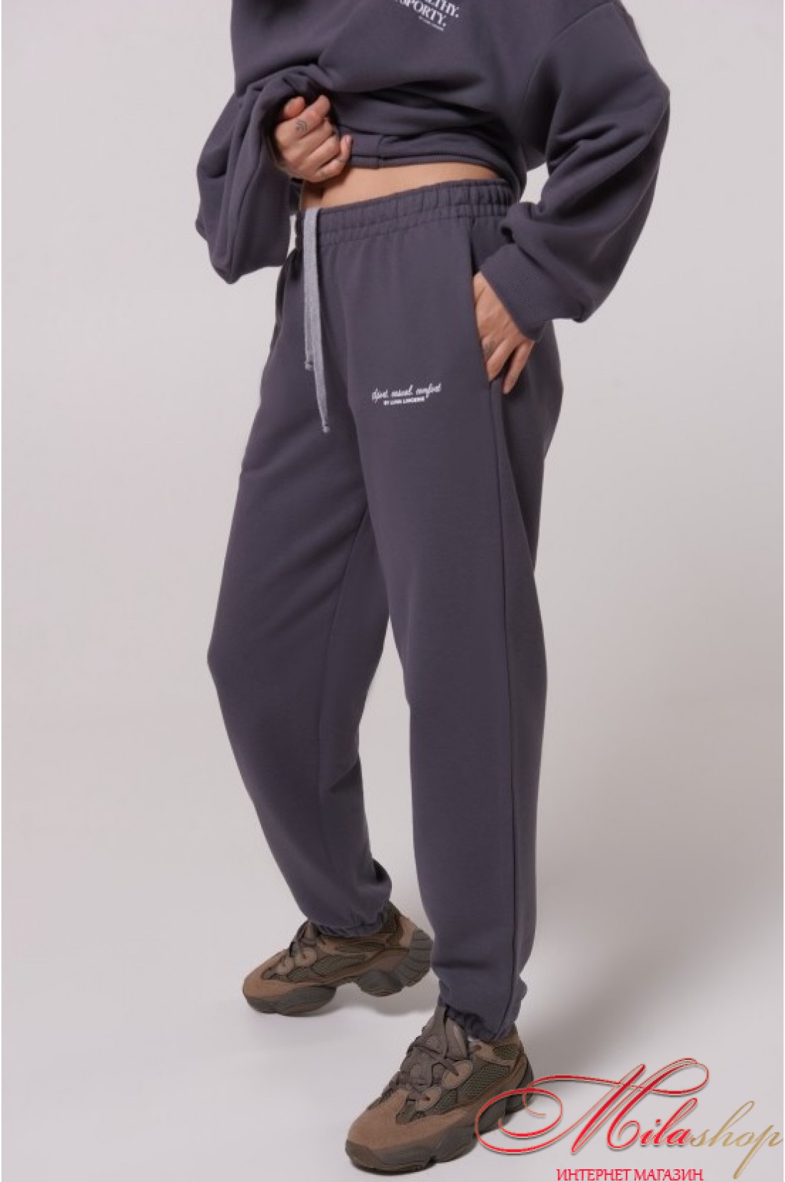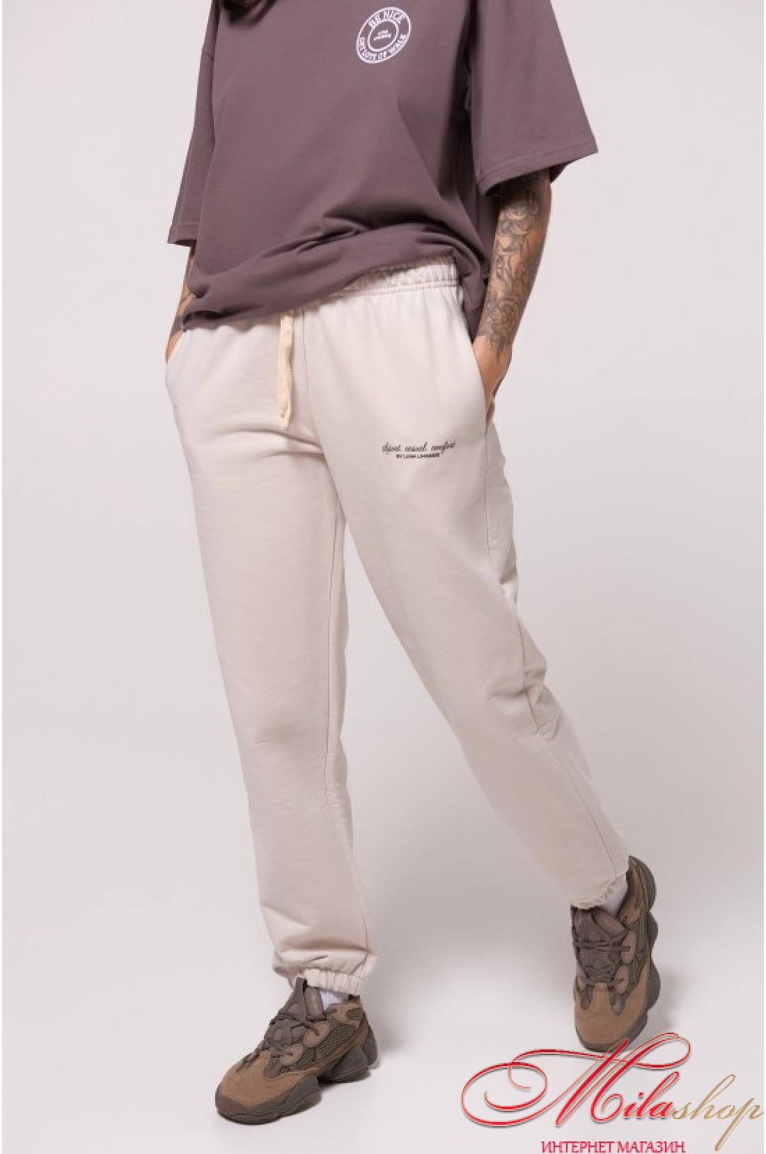 Штани жіночі джогери - середньої посадки, класичного крою. Актуальна річ на всі сезони та різни сфери життя. Оснащені внутрішнім шнурком для регулювання щільності талії. Популярна тканина трьохнитка (петля) має ідеальний екологічний вміст бавовни з невеликою наявністю поліестера для кращої ізносостійкості. Ідеально поєднується з кожним худі та світшотом в колекції. Прикрашені невеликим стильним фірмовим принтом.