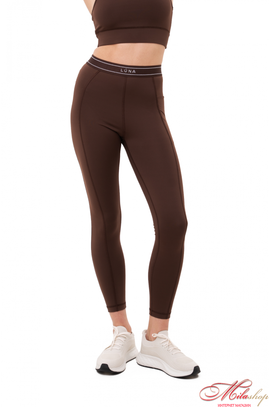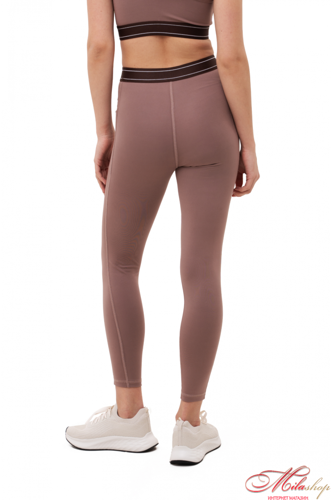 Легінси з поясом-брендованою резинкою, з рельєфами по бокам, в бочок з лівої сторони вставлена кишеня, в яку гарно вміщається телефон. Тканина - біфлекс, гарно тягнеться, має гладеньку фактуру, кольорі капучино має більшу щільність, та менше тягнеться, це враховано в лекалах. Склад: 100% поліестер.
