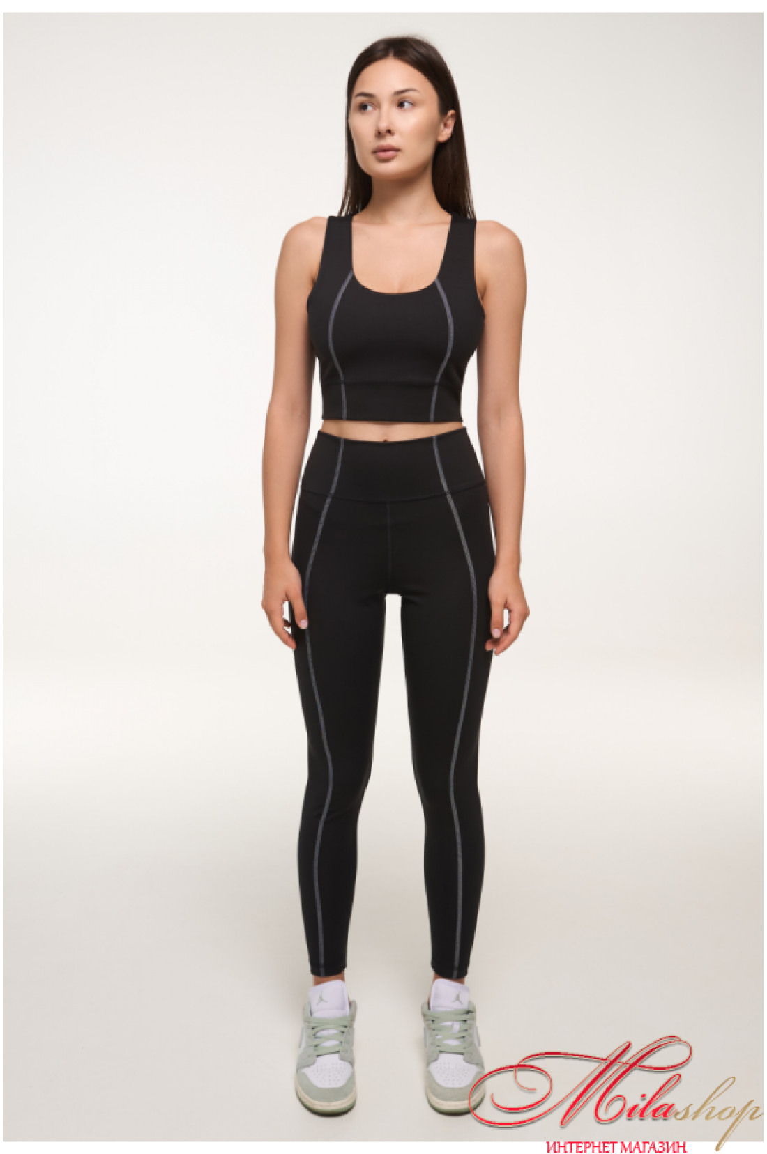 Легінси (лосіни) зі спортивної мікрофібри з високою коригуючою посадкою. Декоровані контратсними швами по нозі. З щільного матеріалу. Плоскі шви. Висока посадка талії, яка ущільнена подвійною мікрофіброю для надійної фіксації та формування фігури.