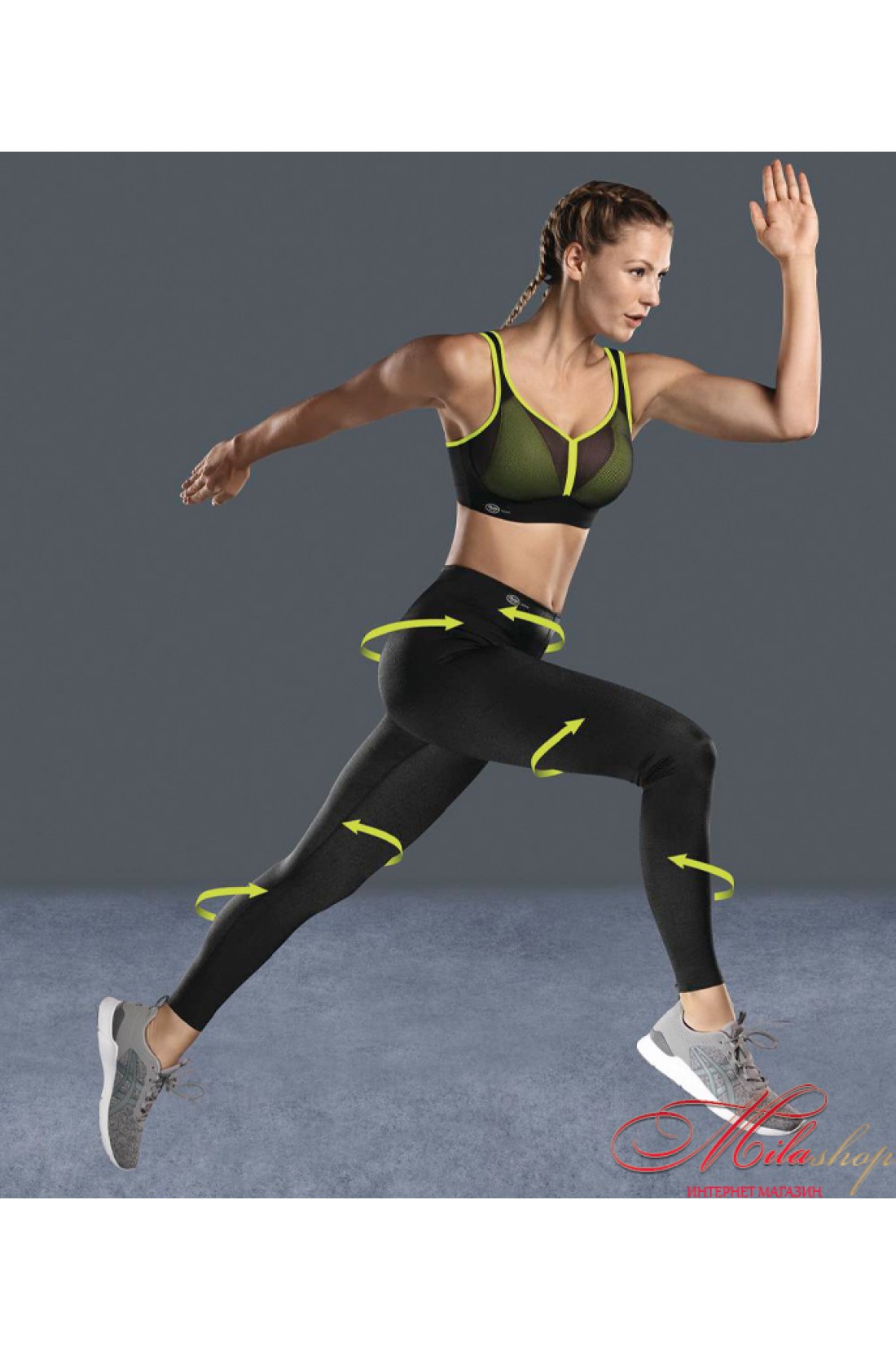 Довгі компресійні лосини. Надають масажну дію, завдяки якій стимулюється крово- й лімфообіг. Допомагають з профілактикою набряків і варикозу, а при активних заняттях спортом допомагають в боротьбі з целюлітом. Такий ефект досягається за рахунок спеціальної тканини Power fabric із тривимірним рельєфом. Зменшують ризик травм під час тренувань завдяки компресії. Ергономіка: легкий пояс, плоскі шви та ластовиця особливої форми розроблені для легкості рухів, а необроблений нижній край лосин забезпечує комфорт під час надягання й тренувань. Структура тканини, що дихає та швидко сохне, відводить вологу від тіла, за рахунок чого шкіра залишається комфортно сухою. Лосини створюють візуальний ефект стрункості.