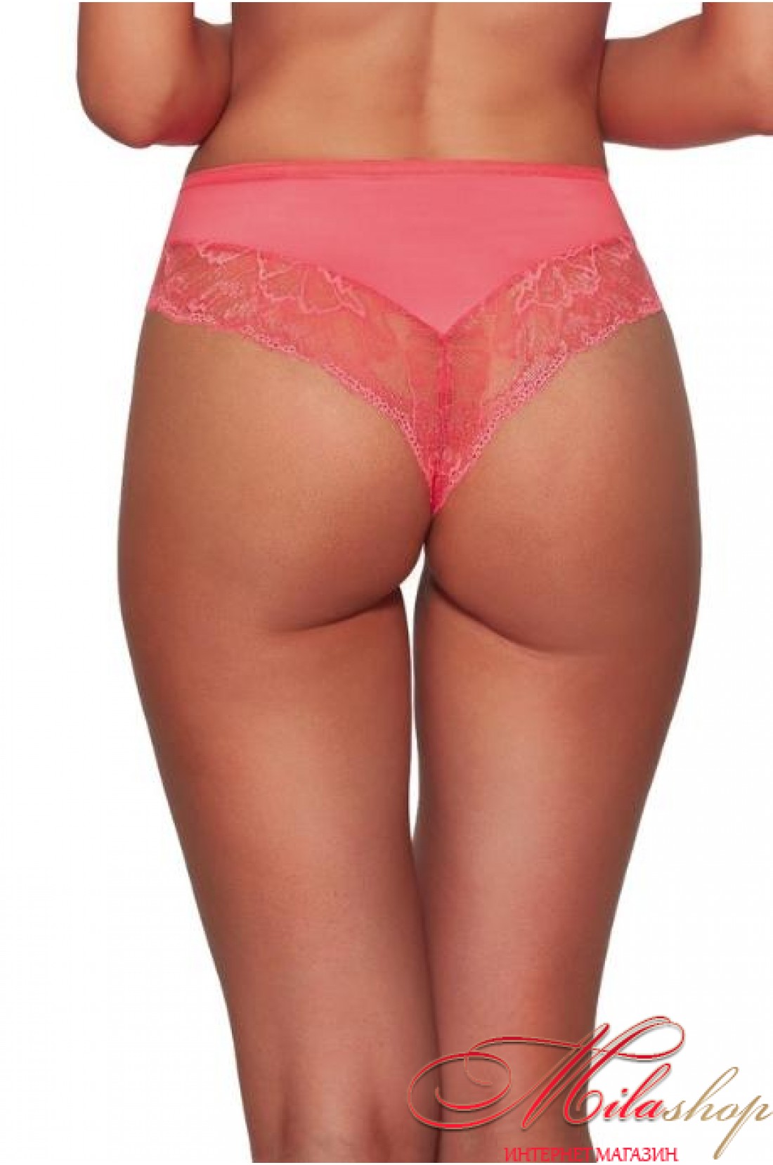Трусики бразиліана виготовлені з мікрофібри зі вставками з гарної мікросіточки та мережива, бавовняна ластівка. Завищена лінія талії.