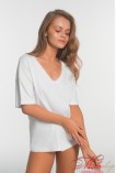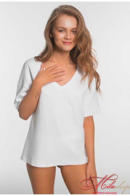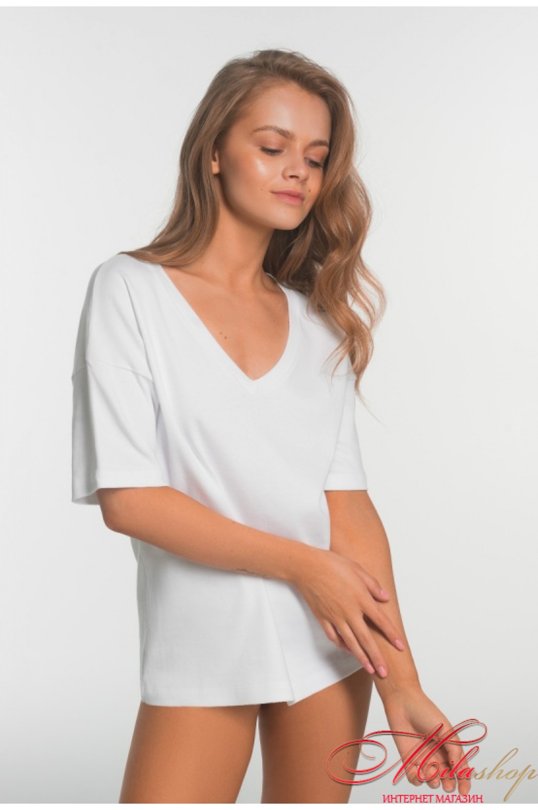 Футболка oversizeз щільного котону з V-вирізом комірця. Футболка має конструкцію oversize. Рукав має розміщення на середині плеча – спущений. V-образний виріз комірця. Не глибокий, але жіночно відкриває шию і частково декольте. Довжина середня, щоб носити вільно на випуск та стильно заправляти. Абсолютний must have будь якого сезону. Тканина – 100% pima cotton.
