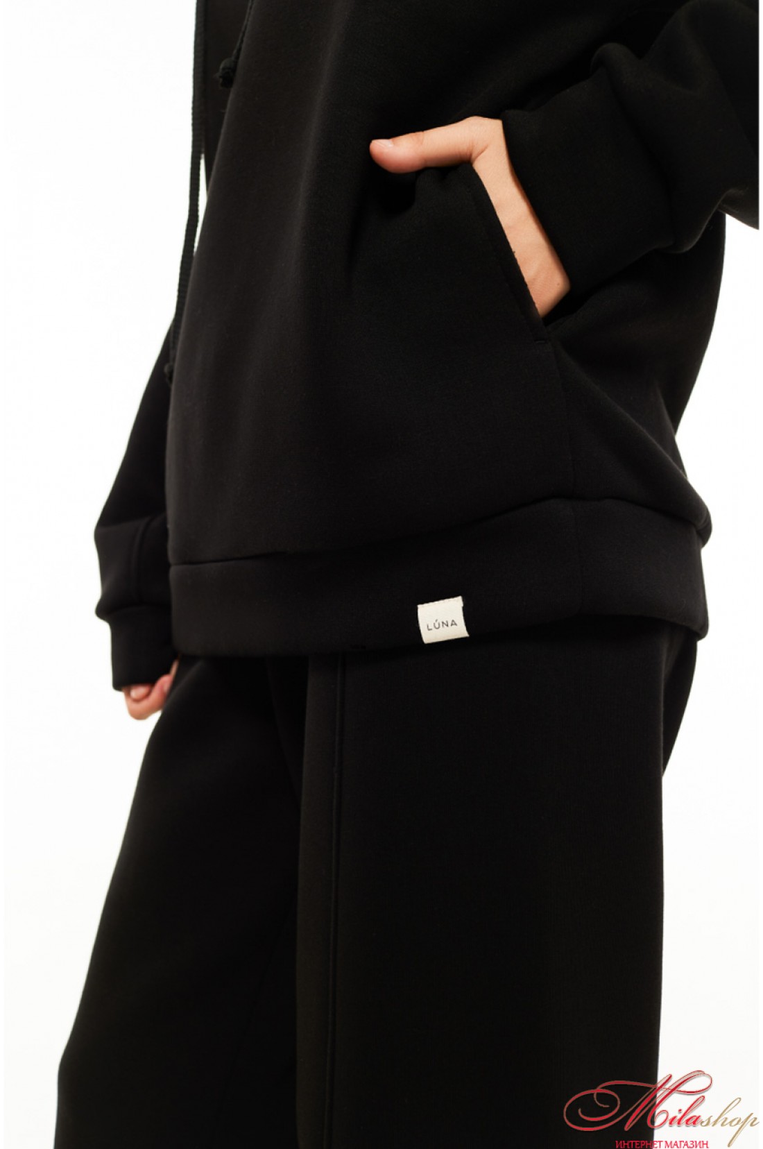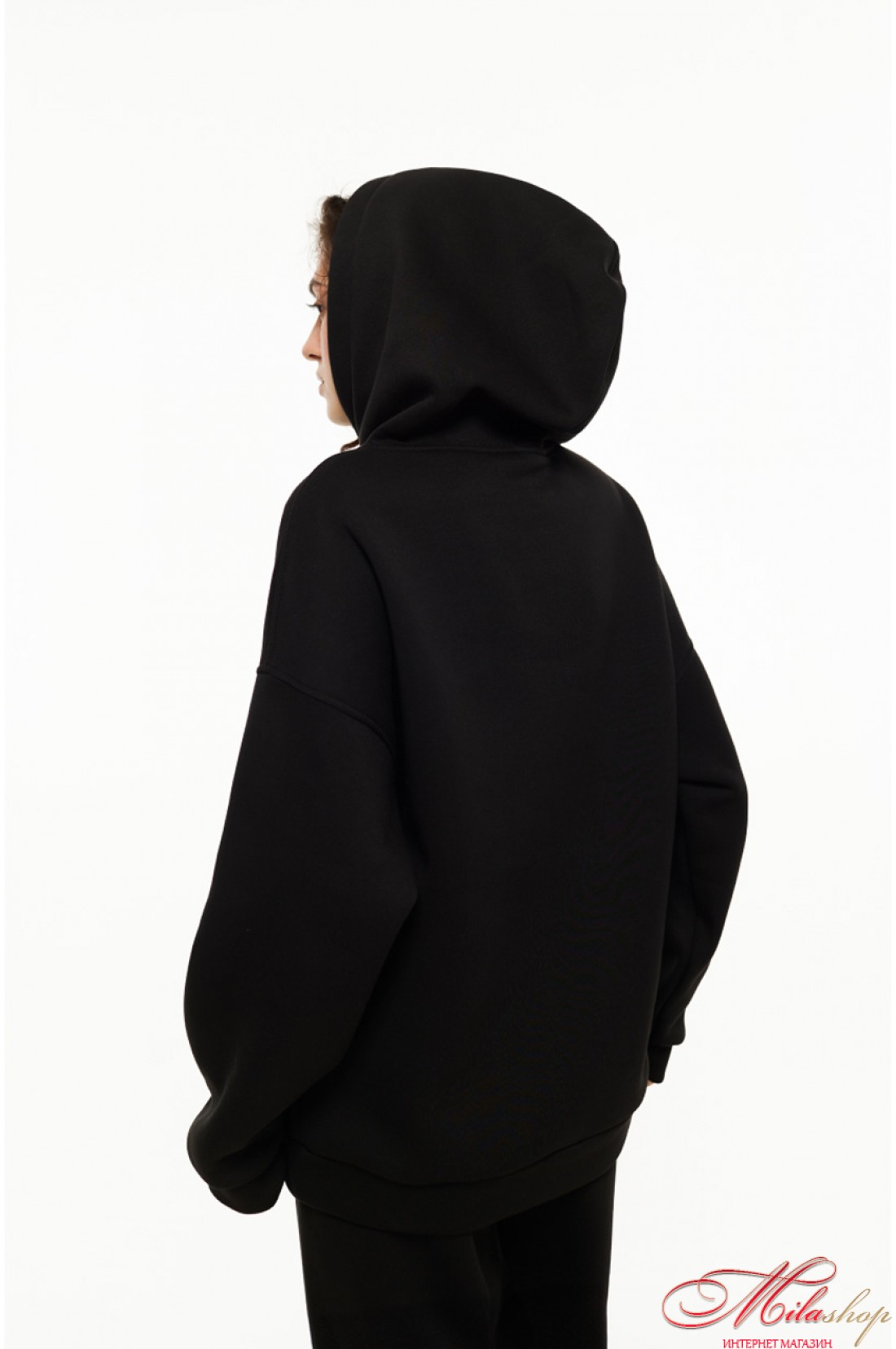 Класичний худі , прикрашений відстрочками. Ідеальна річ для зими та холодного міжсезоння. Має об'ємний капюшон. Має велику сховану кишеню. Оздоблений манжетом - резинкою, та нижним кантом. Рукав вільного крою, трохи спущене плече. Ідеальний конструктор одягу - може бути поєднаний з будь-якою моделлю джогерів, спортивного одягу усіх кольорів бренду.