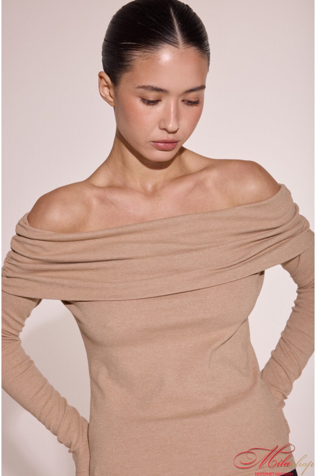 Неймовірно стильна й жіночна модель із м’якого гладкого рубчика. Слімовий силует, відкриті плечі та драпіювання з трендовим відворотом додають витонченості кожному образу. У боковому шві — тоненька силіконова резиночка, що надійно фіксує красиву зборку драпіювання. Тканина: 49% бавовна, 48% поліестер, 3% еластан. М’яка, приємна до тіла, добре тягнеться, не сідає після прання. Тонка, але тепла — нагадує тканину термобілизни. Рекомендації: прати при 30°C із подібними кольорами.