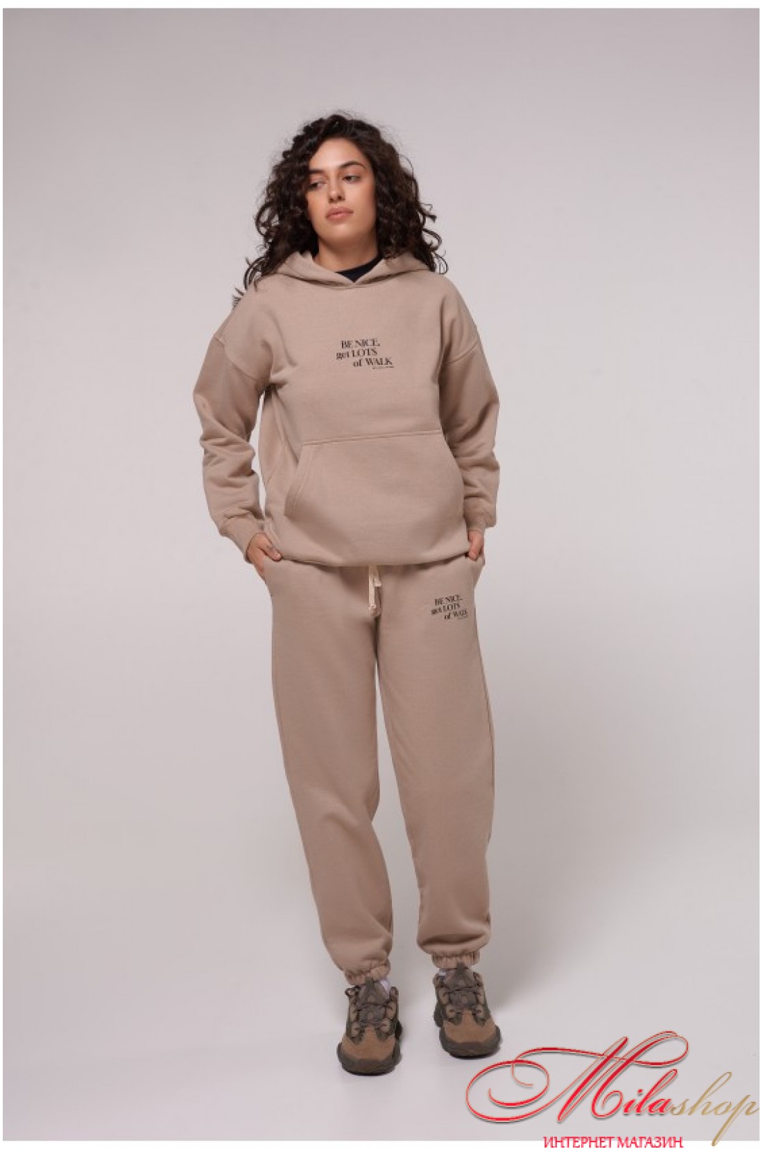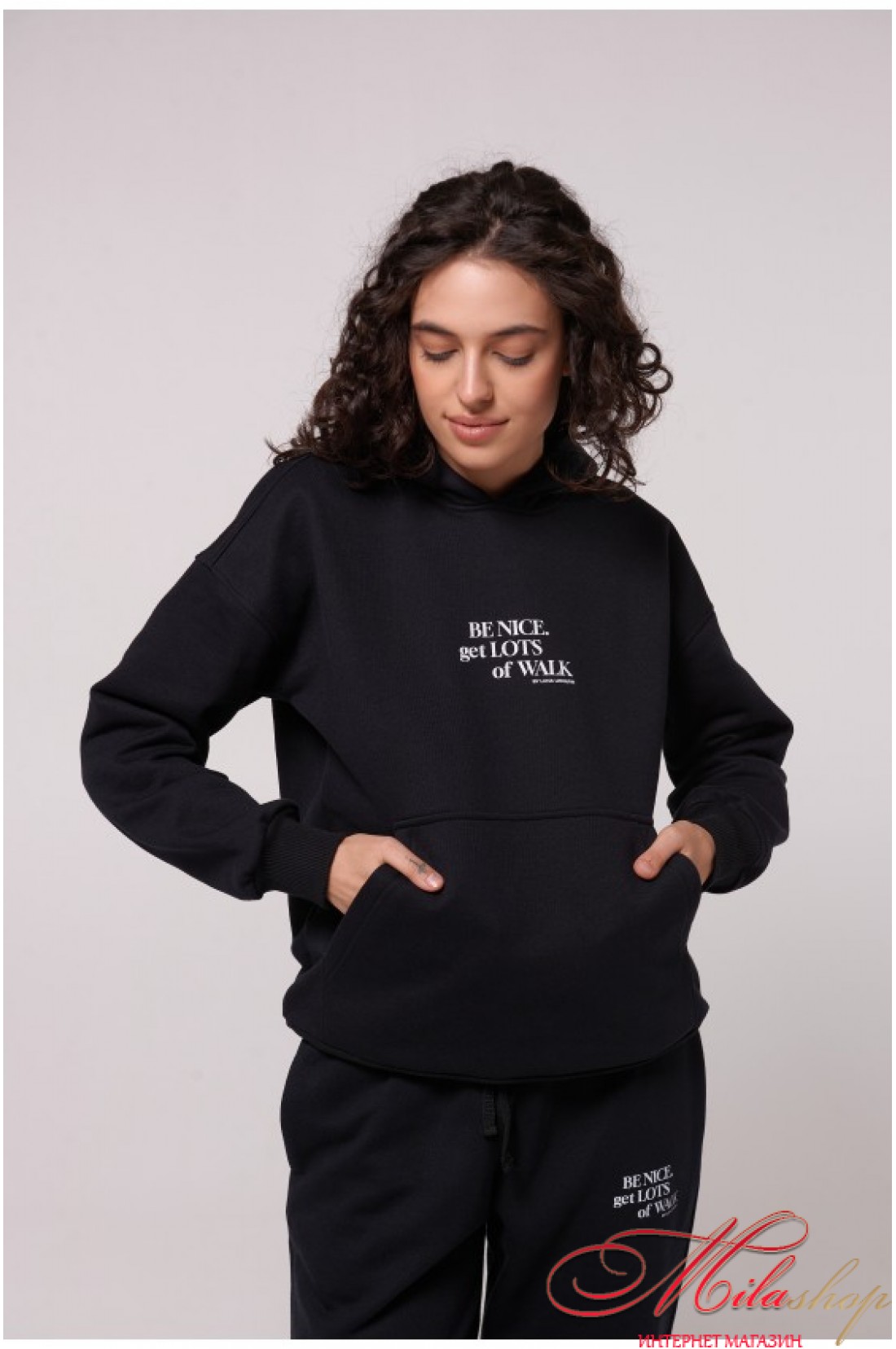 Класичний утеплений худі з начісом. Ідеальна річ для зими та холодного міжсезоння. Комфортна та м'яка тканина забезпечує тепло та уют. Має об'ємний капюшон, та високу посадку горловини для впевненого носіння в холодну погоду. Оздоблений бавовняним манжетом - резинкою, та нижним кантом. Рукав вільного крою, трохи спущене плече. Має велику центральну кишеню. Прикрашений невеликим стильним фірмовим принтом в центральній частині виробу.