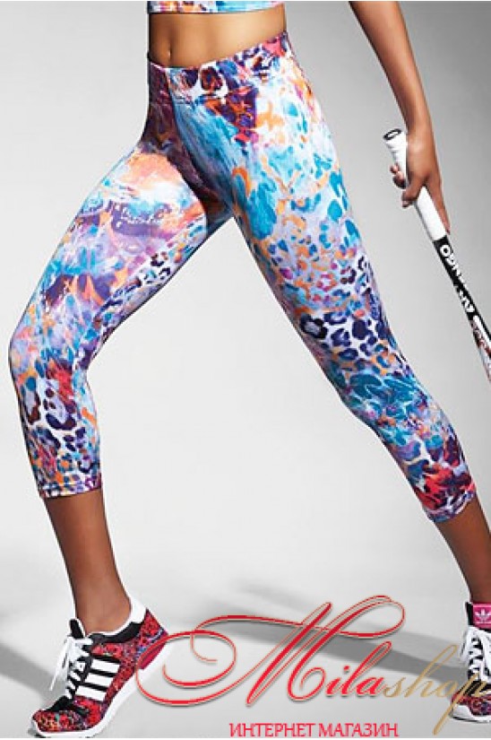 Красивые и удобные капри для спорта выполнены из приятной и эластичной ткани с цветным принтом.