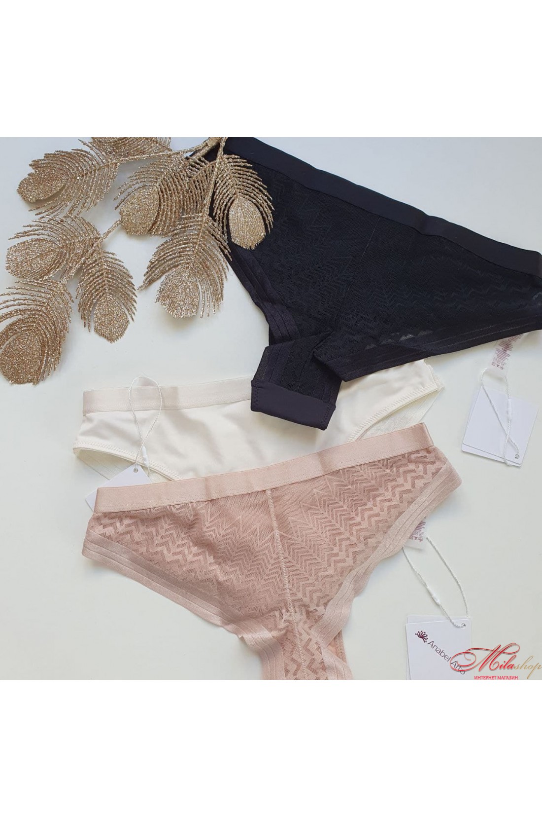 Элегантные классические трусики бразилиана. Выполнены из мягкого полотна, сзади изделие выполнено из сетчатого полотна с орнаментом в тон, ластовица - хлопок.