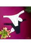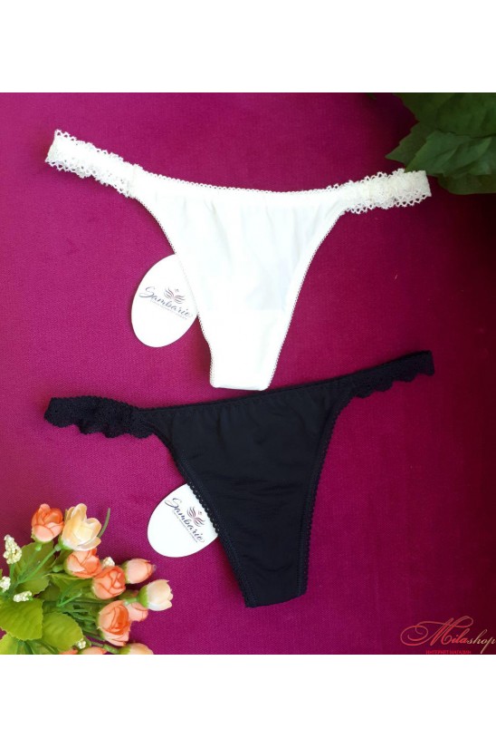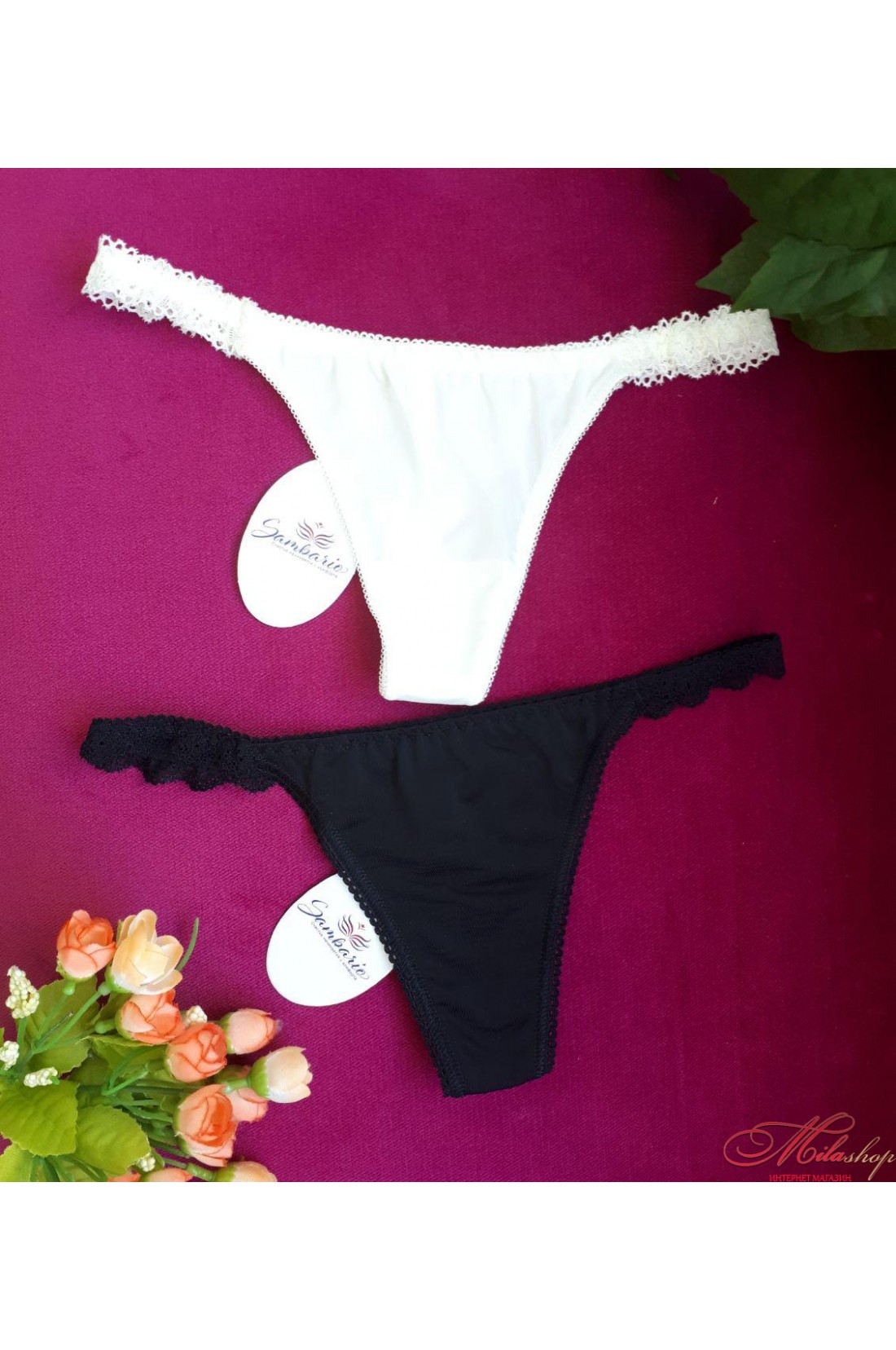 Трусики стринги выполнены из мягкой ткани и кружева, декор бантик. Ластовица - хлопок.