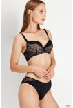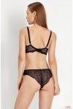 Трусики-бразиліана з мережива та мереживного полотна, із середньою лінією талії. Задня деталь зі швом посередині і без гумок по краю.