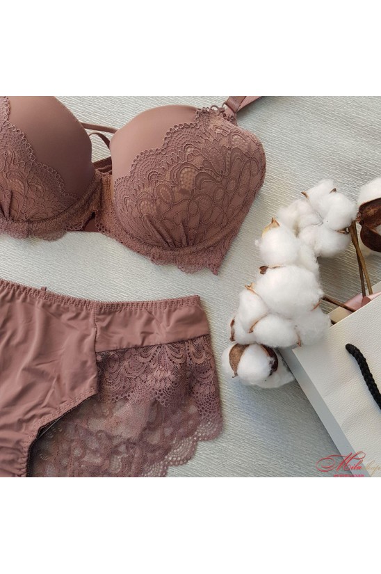 В этом комплекте бюстгальтер имеет съемные подушечками пушап, которые при желании легко достать. Также есть съемные полосочки для создания соблазнительного декольте. Задняя деталь трусиков, как и спинка бюста, выполнены из кружева. Половина чашки как и передняя деталь трусиков-абсолютно гладкие! Именно такое сочетание тканей делает этот комплект бесподобным!