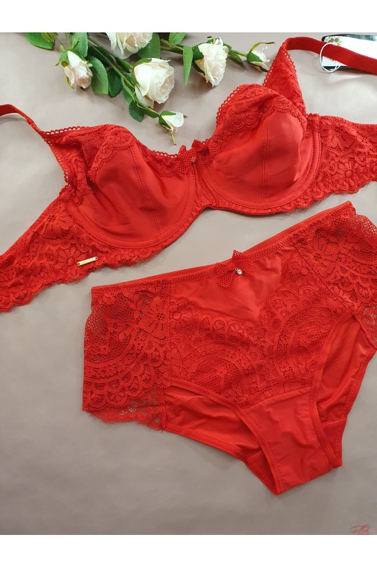 Мереживний комплект з м'якою чашкою Lanny Mode 11467+51467 червоний