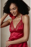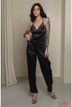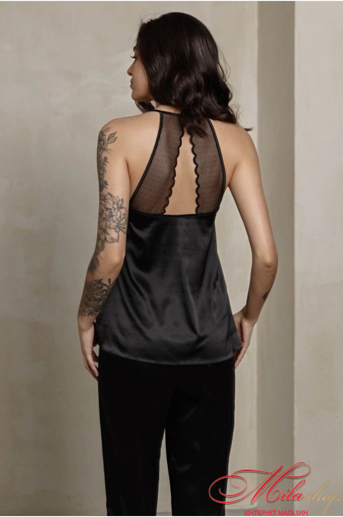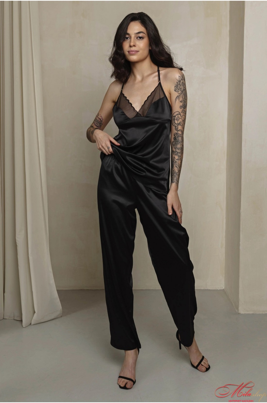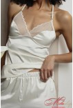 Дивовижний жіночий комплект із сатину і мережива, що складається з майки і штанів для дівчат з невеликим і середнім розміром грудей.
