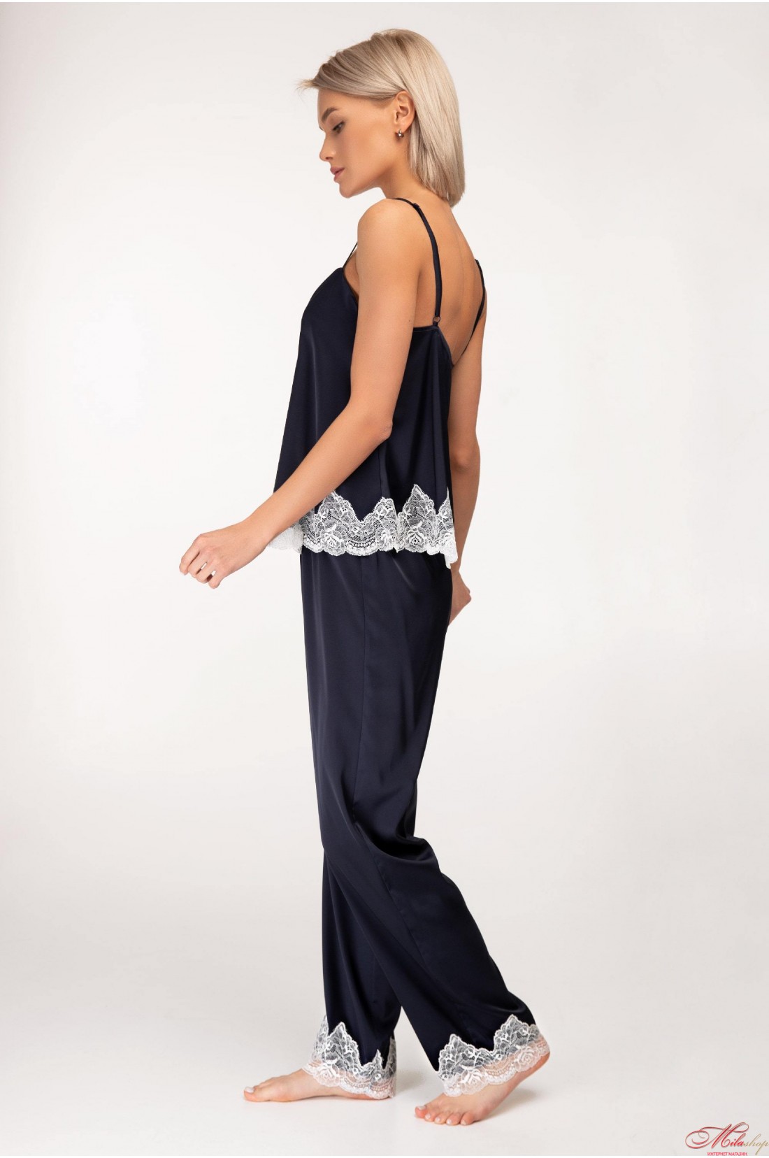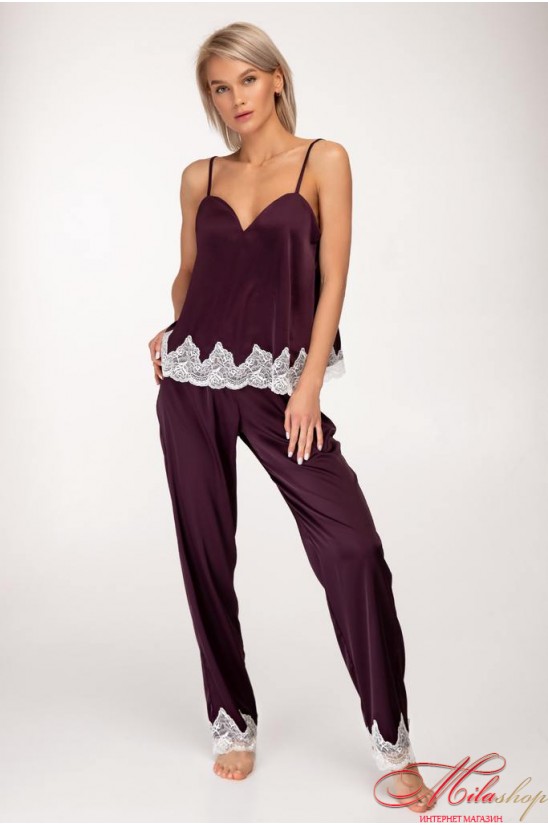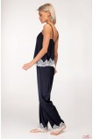 Комплект свободного кроя. Маечка на тоненьких регулируемых бретелях. Комплект декорирован кружевом контрастного цвета