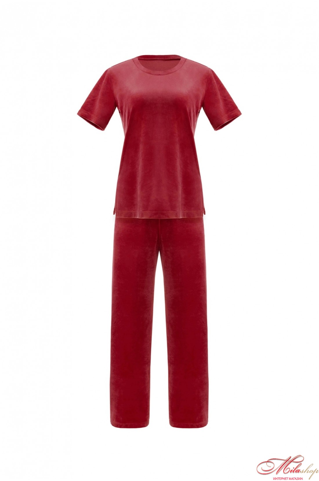 Комплект з велюру для жінок, що складається з футболки і брюк.
