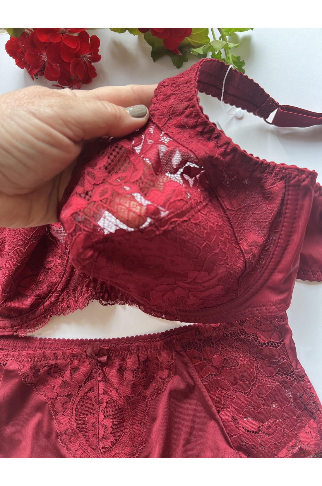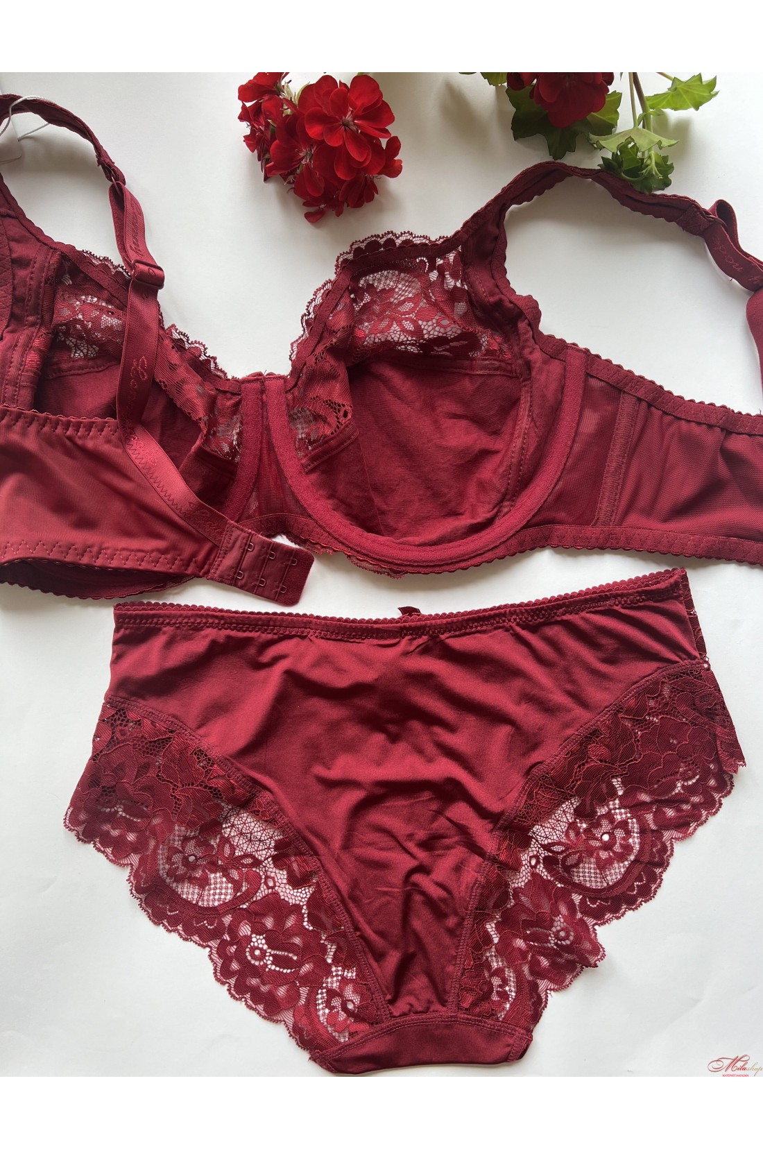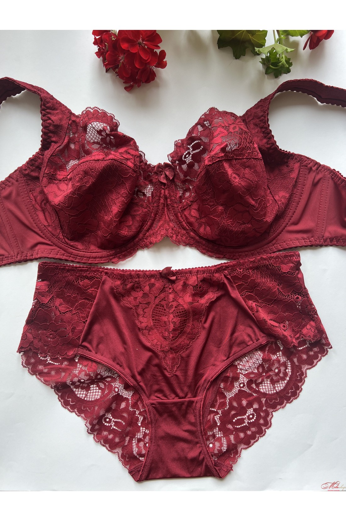Бюстгальтер на кісточках, бічна деталь, що коригує, плавно переходить в розширену бретель, що дозволяє ефектно формувати форму грудей. Усередині на половину філіжанки бавовняна підкладка, спинка з еластичного матеріалу підвищеної щільності, застібка на два гачки в трьох положеннях. Шикарний бюстгальтер для великих грудей! Класичні трусики сліпи виконані з мікрофібри та прикрашені мереживом. Завищено лінію талії. Бавовняна ластівка.
