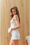 Ніжна та комфортна жіноча піжама, складається з майки з широкими бретелями та комфортних шортів. Піжама дуже красива, легка і приємна до тіла, також стане корисним подарунком коханій та близькій людині. Виконана з бавовни.