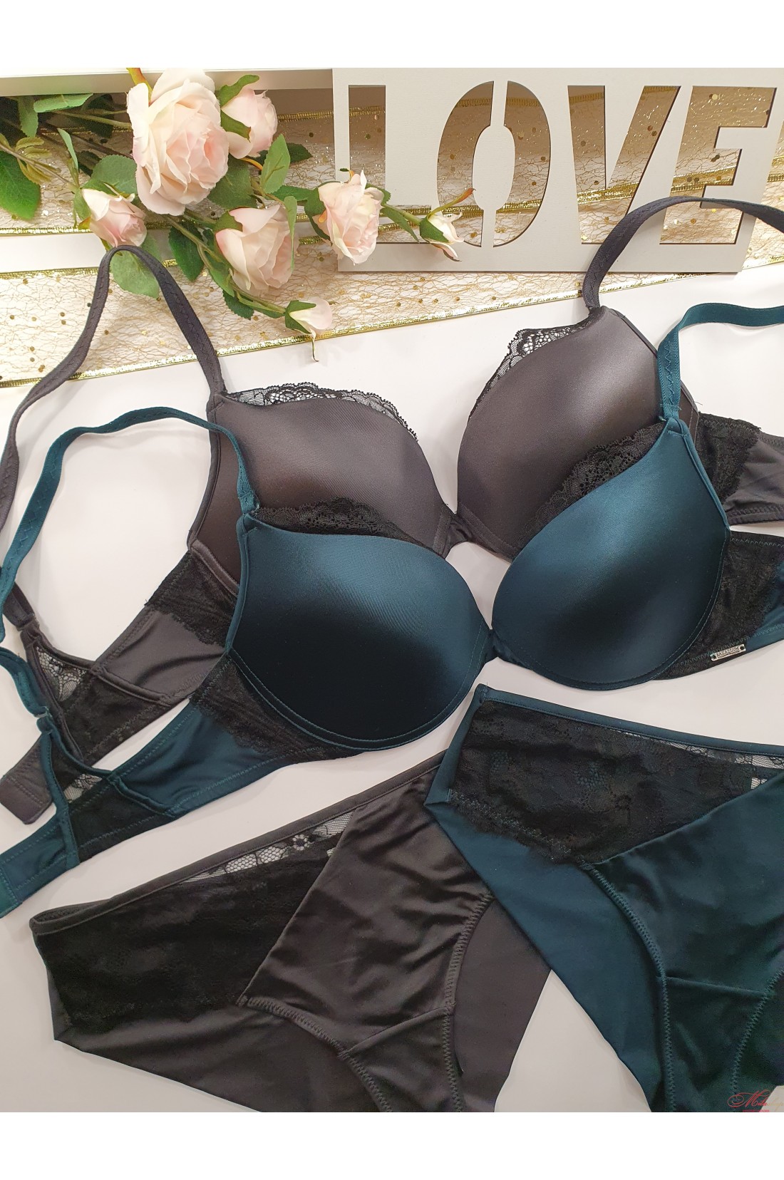 Комплект з гладкими чашками та мереживом Balaloum 9433