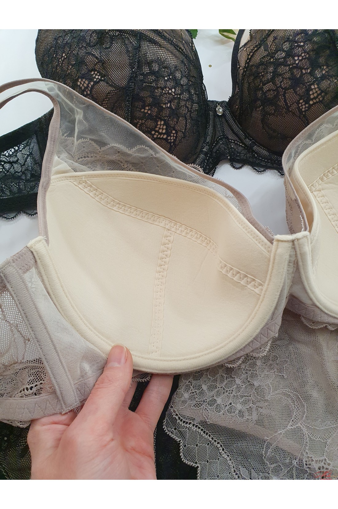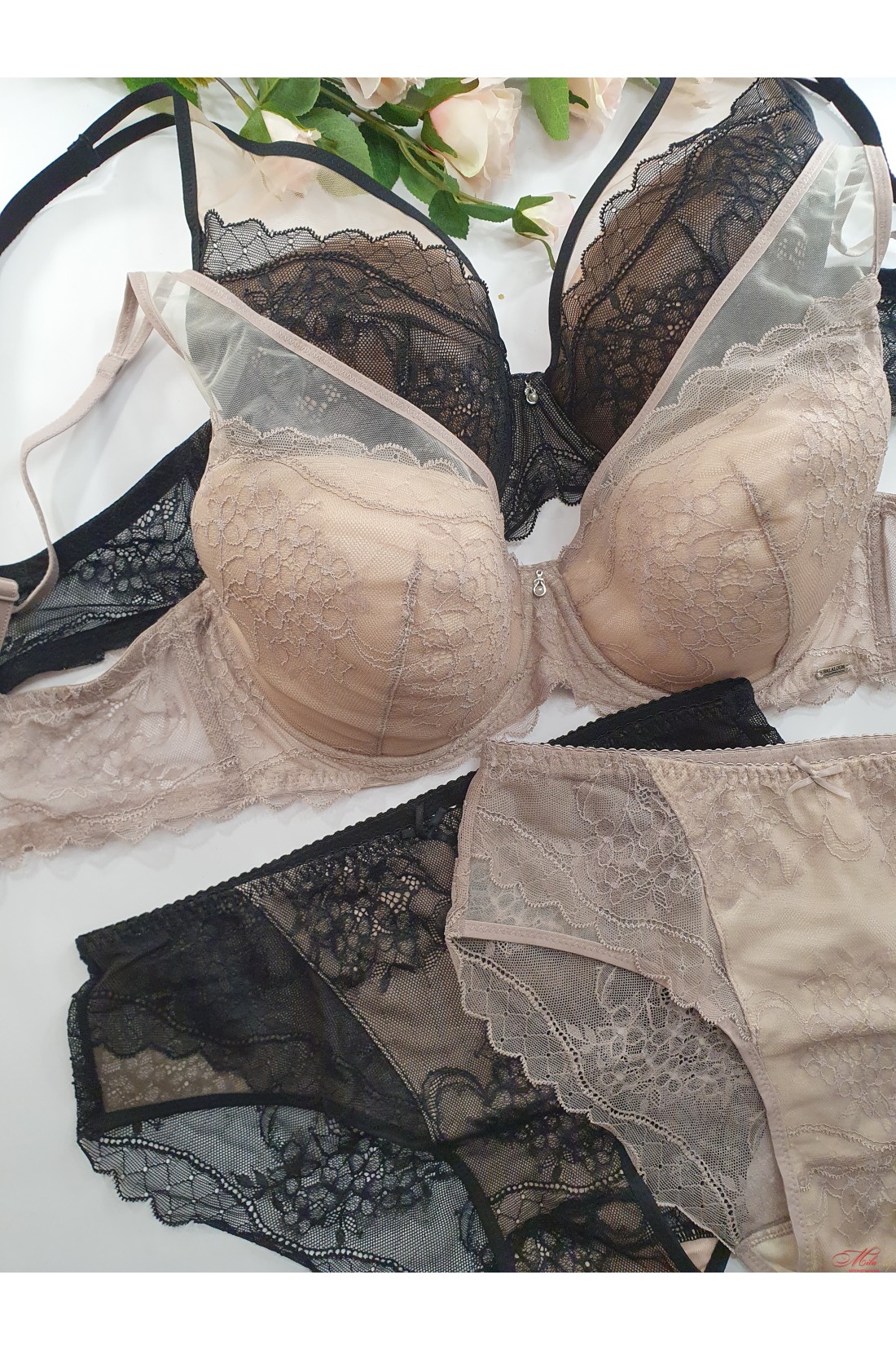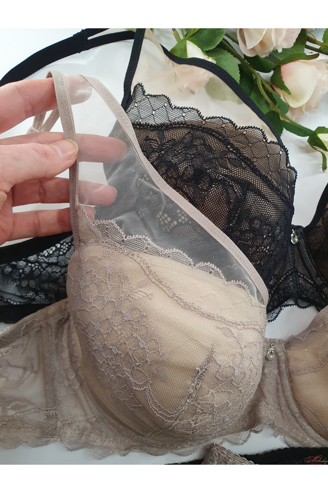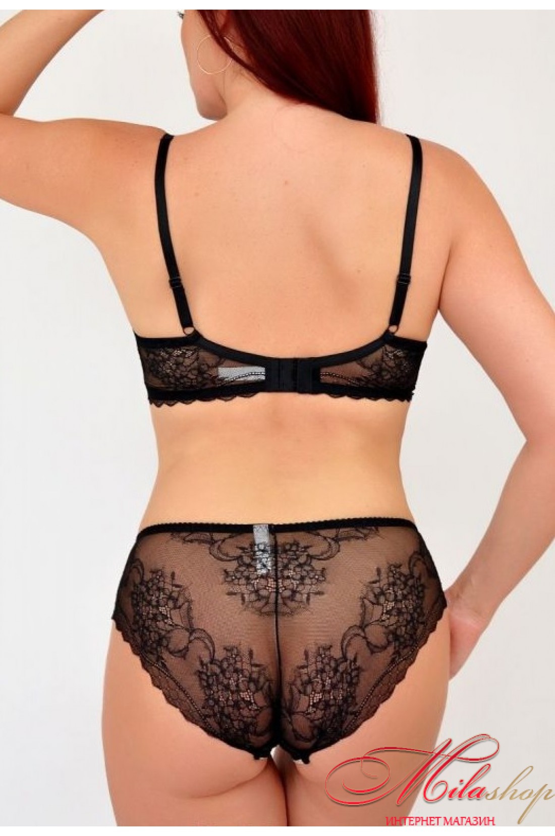Розкішний комплект із елегантного мережива та сітчастого полотна. Бюстгальтер на тонкому поролоні, трусики-сліпи.