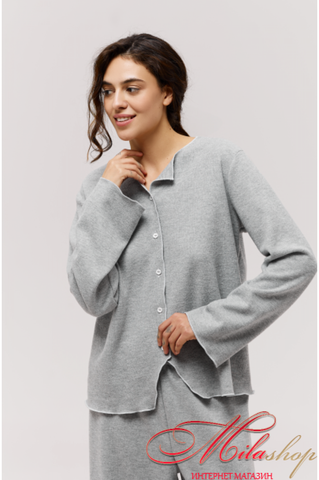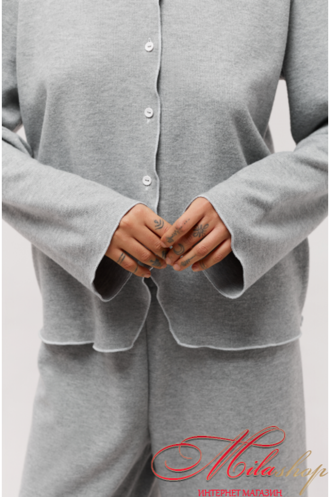 Піжама утеплена або домашній костюм. Кардиган на гудзиках прямого вільного крою, та брюки кюлоти. Комфортна та тепла модель для сну та домашнього відпочинку. Тканина - рібана з начосом, мʼяка та приємна на дотик. Рекомендації по пранню при 30 градусах в делікатному режимі з подібними кольорами.
