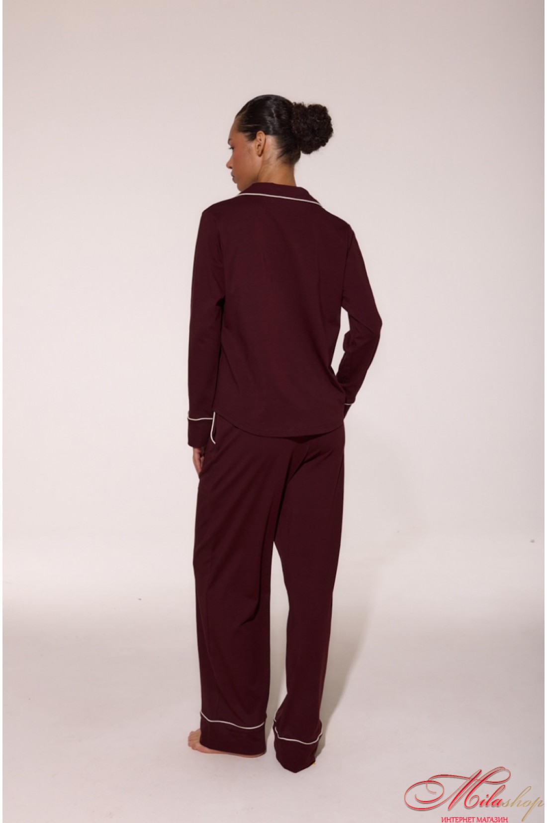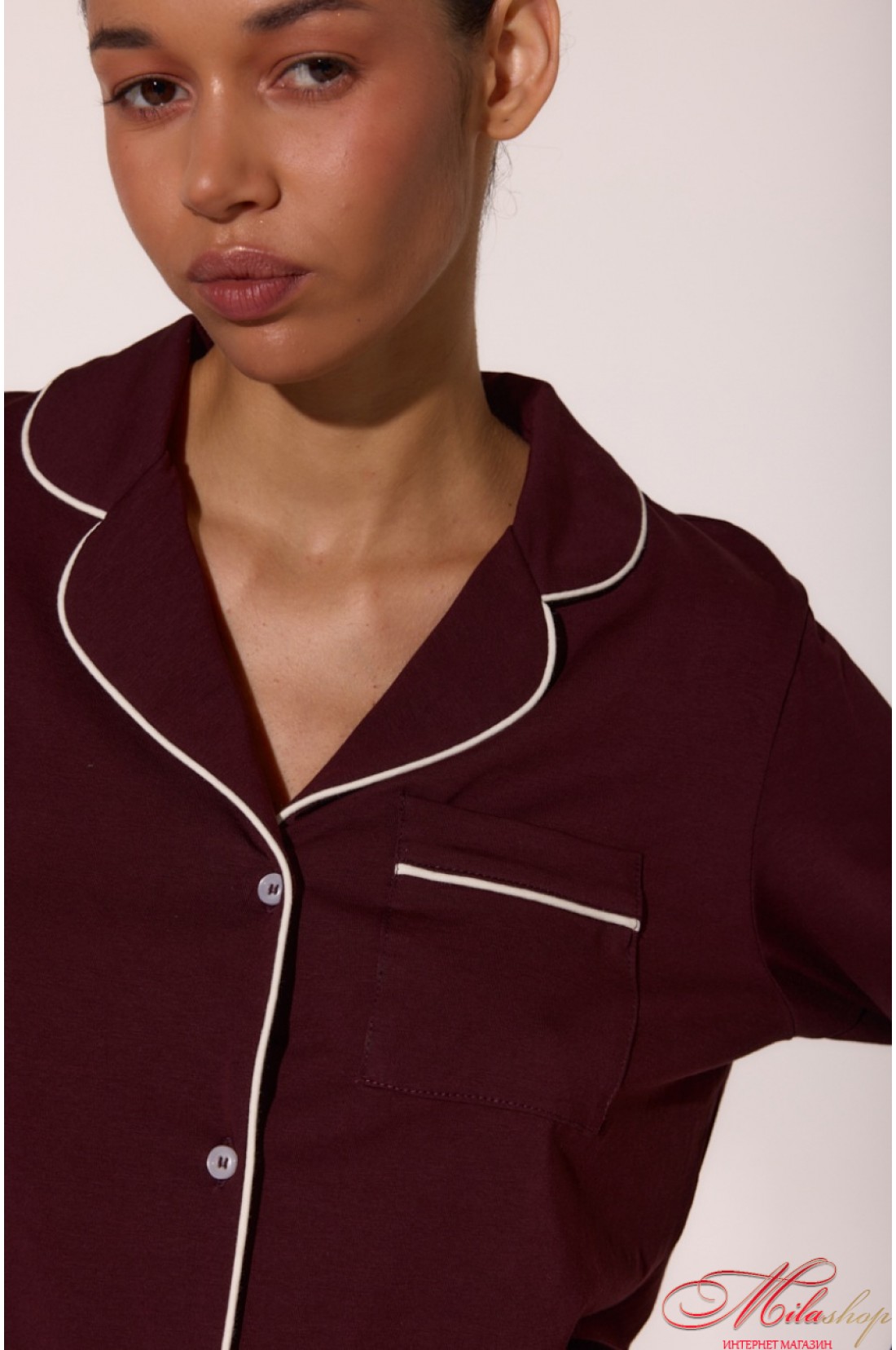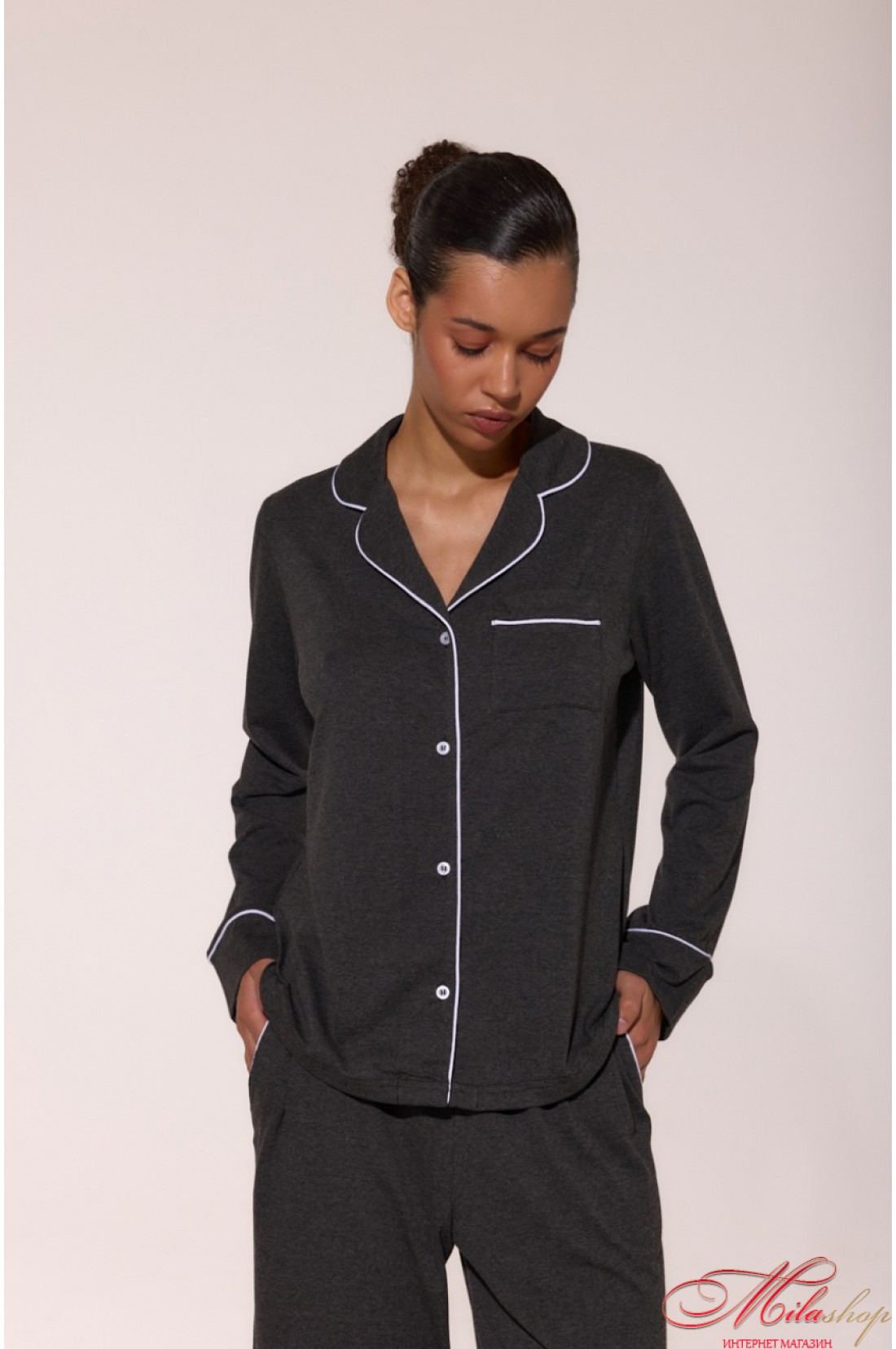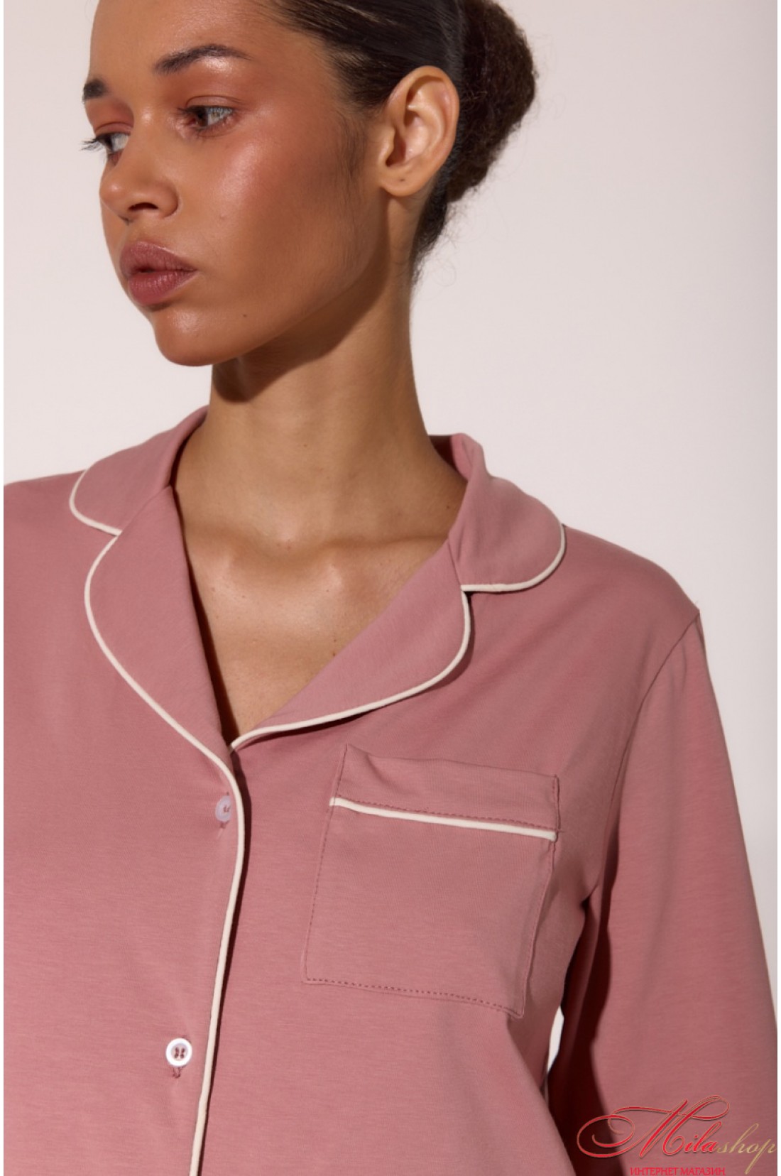 Бавовняна піжама з кантами LP-056 — це поєднання ніжності та стилю. М’який кулір забезпечує комфорт у будь-яку пору року, а акуратні кантові вставки додають витонченості. Сорочка з англійським коміром і накладною кишенею, зручні штани з боковими кишенями та манжетами — ідеальний баланс між класикою та сучасністю. Рекомендації по пранню: при 30 градусах, з подібними кольорами.