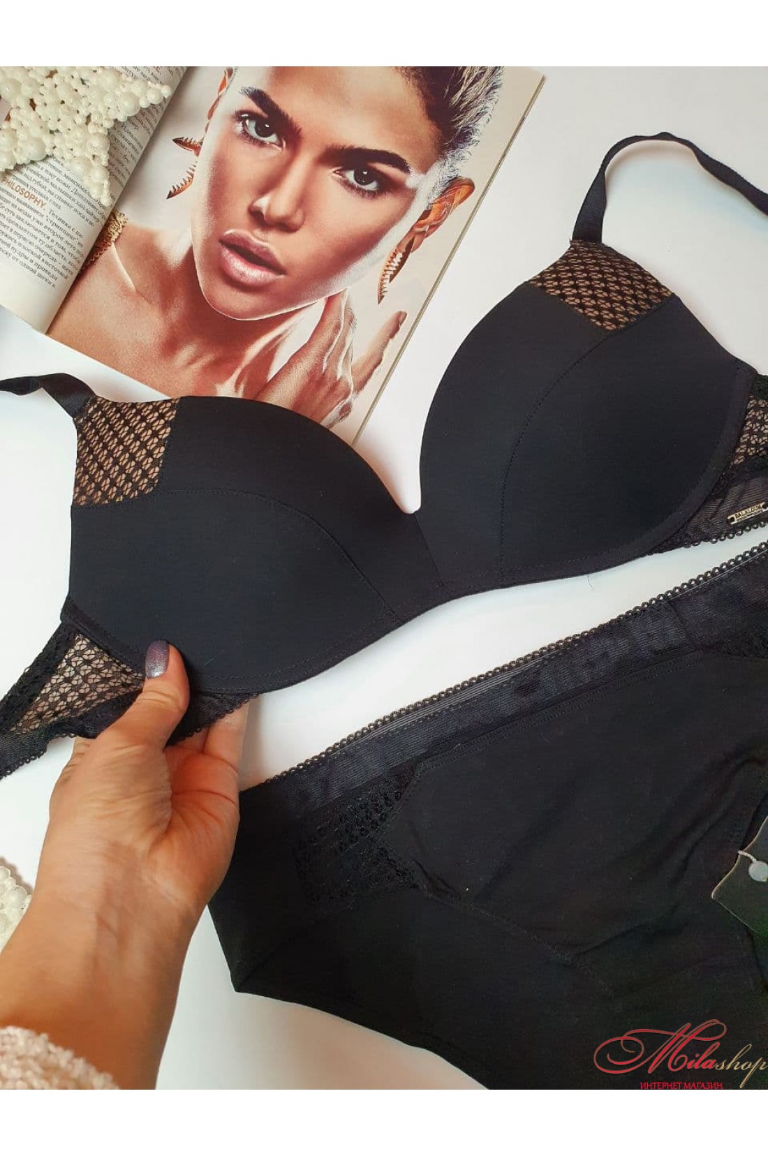 Особливість цієї моделі - вона без кістки, але push up. Що є рідкістю! Дуже комфортний, створює спокусливу лінію декольте. Оригінальний декор із втавки сіточки, виглядає сексуально та стильно. Трусики закриті, середньої посадки. Бавовняна ластівка.