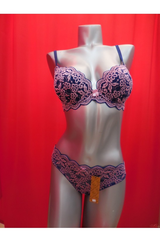 Бюстгальтер с гелевым пуш-апом, выполнен из кружева с цветочным узором. Трусики слип с низкой линией талии.