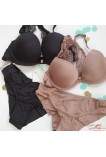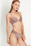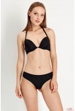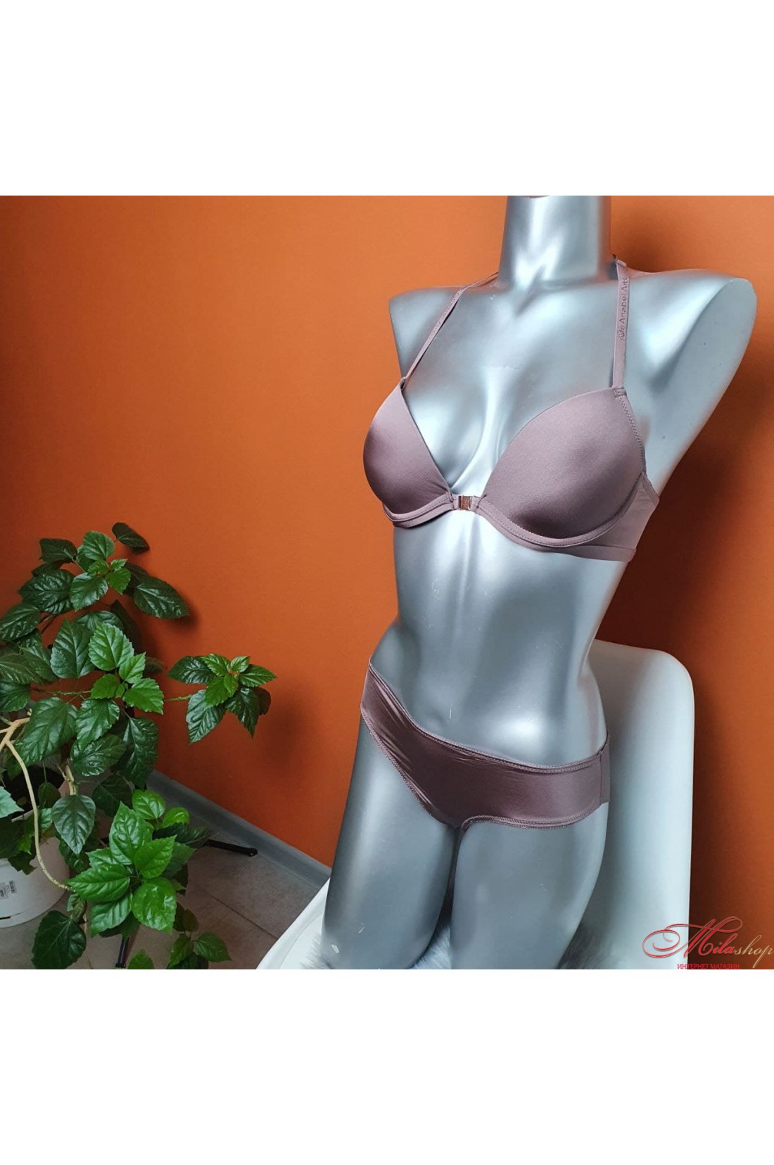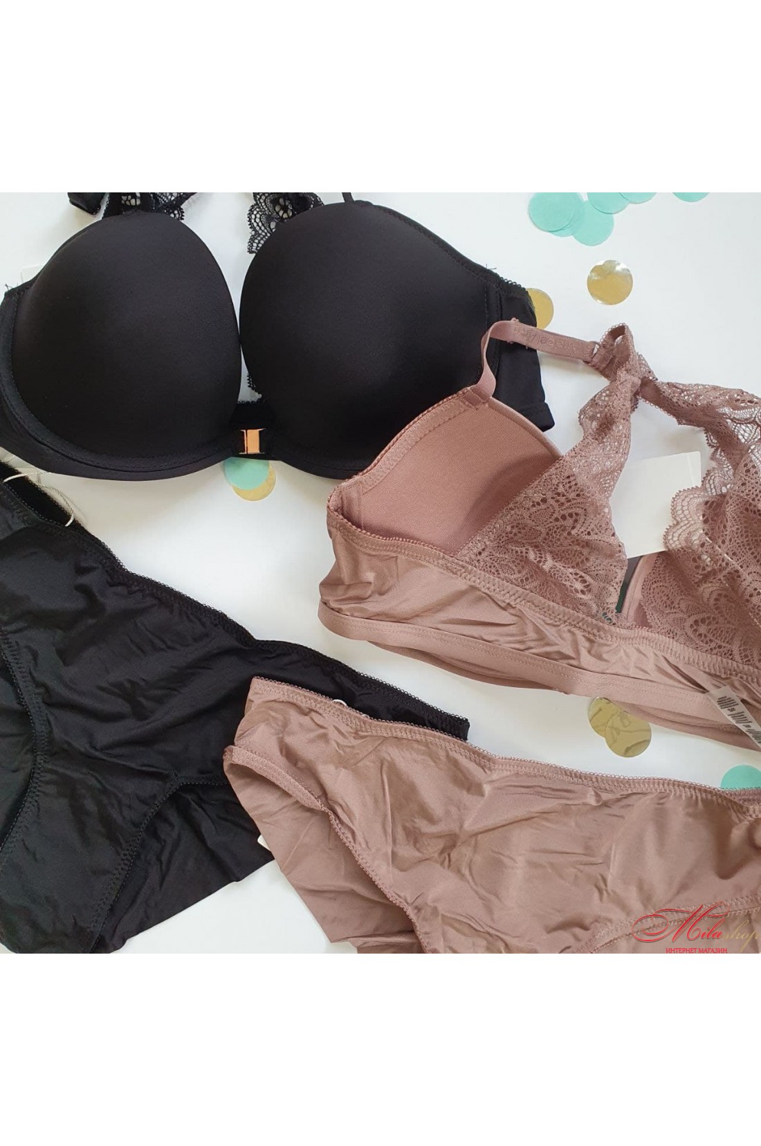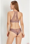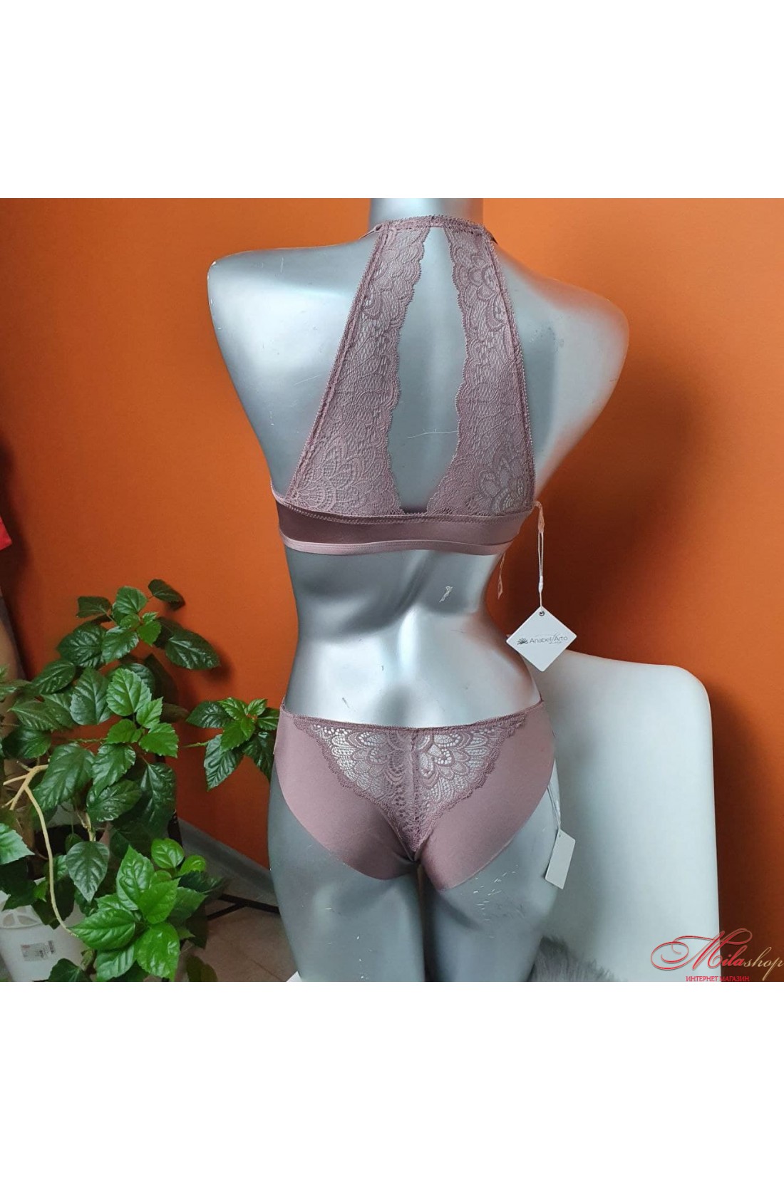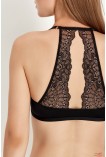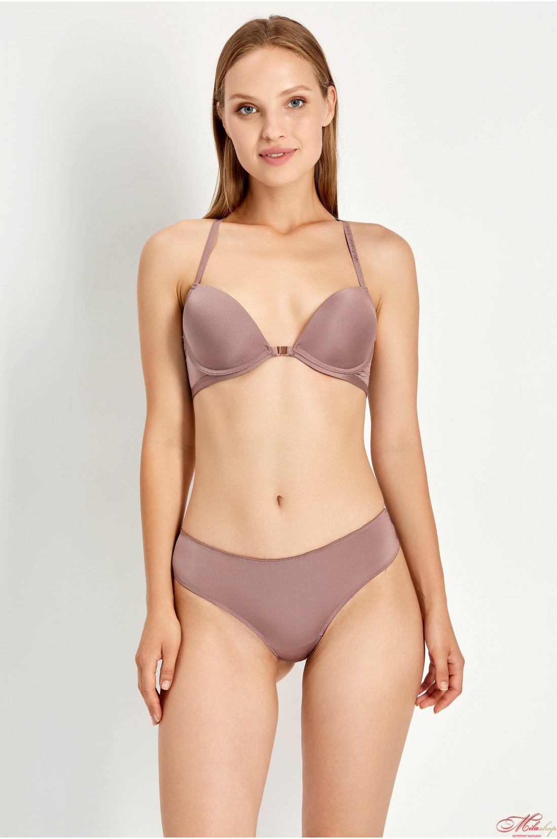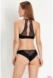 Бюстгальтер з невеликим push-up із мікрофібри, з декоративною застібкою спереду. Бретели фіксуються на шиї і з'єднуються з поясом погруддя середньою деталлю спинки з мережива.